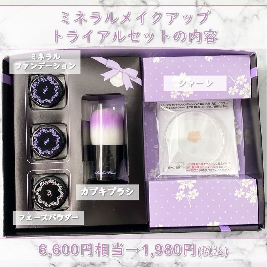 トライアルセットなのに本品ブラシもついてくるお得なセット ※6600円相当が1980円(送料無料)🌹 洗顔で落とせること ※油分が入っていないのでクレンジング不要の石けん落ちファンデ(メイク) 付けた感ゼロの無重力ファンデ 🌟パウダーなのにしっとり
