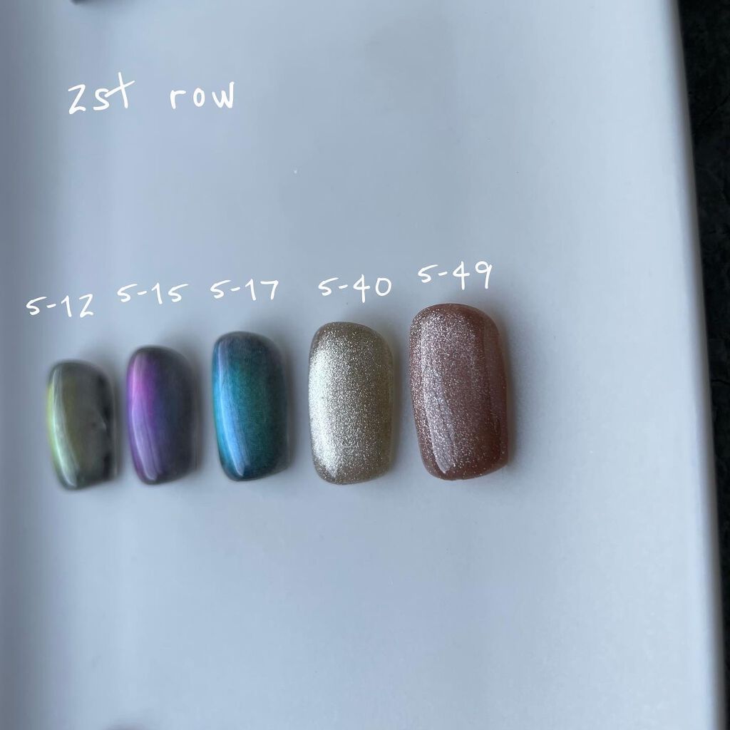ワンカラーだと控えめな輝き。蛍光灯下ではよく見ないとレインボーと分かりません。 濃いめベースだとフラッシュをたかなくてもレインボーがしっかりわかって👌 かなり動きの鈍いマグネットジェルでそこだけ残念。
