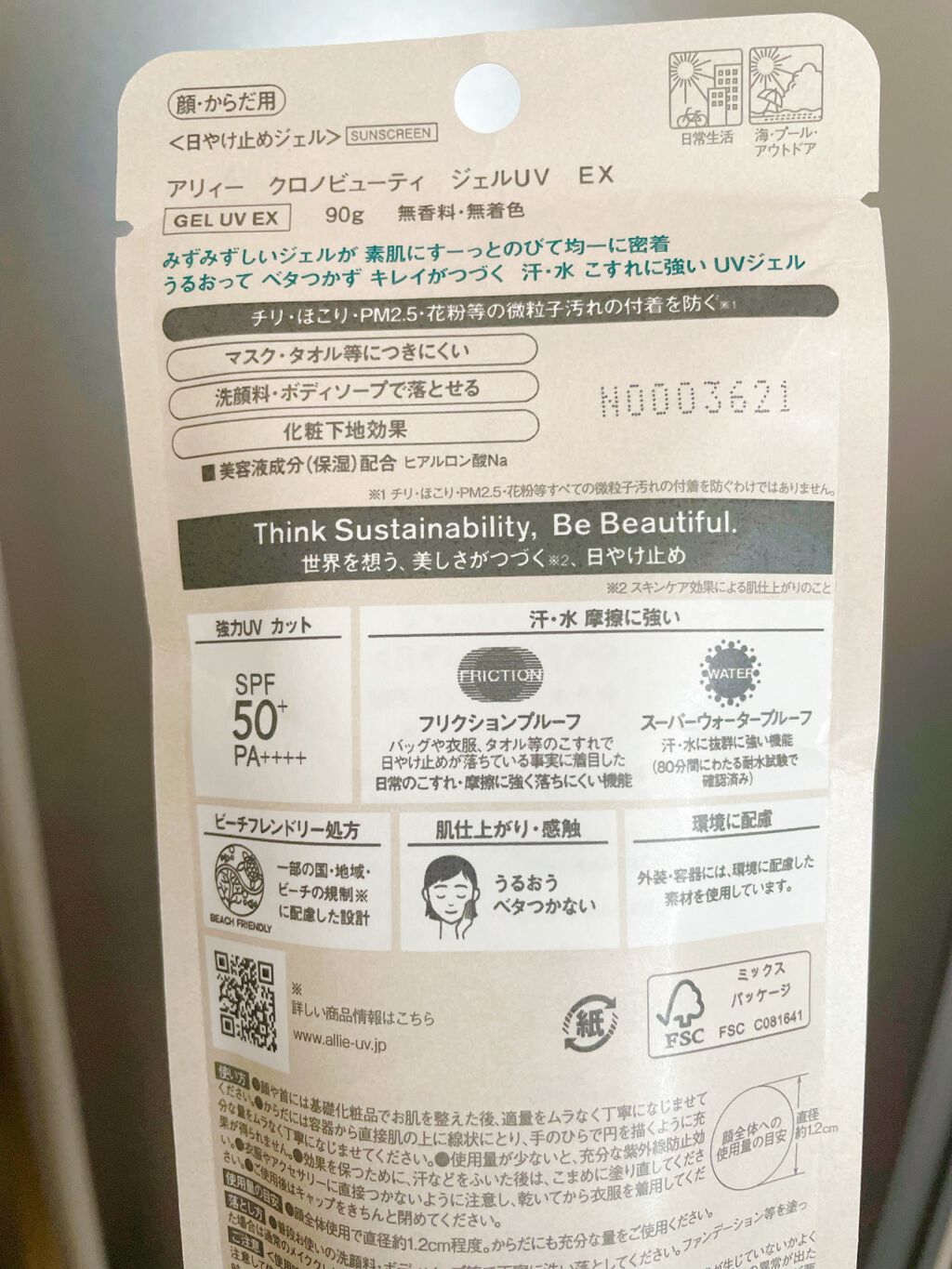 - 世界を想う 美しさつづく*1 日やけ止め おでかけには、落ちにくく、気持ちいい感触がつづく日やけ止めを。 一部の国・地域・ビーチの規制に配慮した設計のビーチフレンドリー処方。 汗・水・こすれにも強く、ベタつかずうるおう仕上がりが持続するジェル UV ●一部の国・地域・ビーチの規制に配慮した設計の「ビーチフレンドリー処方」 ●SPF50+・PA++++ ●汗・水 こすれに強く落ちにくい フリクションプルーフ・スーパーウォータープルーフ ●ベタつきにくい感触がつづく ●うるおい感のある肌仕上がりがつづく ●環境に配慮した素材を使用したパッケージ採用 ●美容液成分(保湿)ヒアルロン酸Na配合 ●顔・からだ用 ●洗顔料・ボディーソープで落とせる ●マスク・タオル等につきにくい ●化粧下地効果 ●無香料・無着色 ●チリ・ほこり・PM2.5・花粉等の微粒子汚れの付着を防ぐ*2 *1 スキンケア効果またはメイクアップ効果による肌仕上がりのこと *2 チリ・ほこり・PM2.5・花粉等すべての微粒子汚れの付着を防ぐわけではありません <限定セットA:セット内容> ・アリィー クロノビューティ ジェルUV EX 90g ・アリィー クロノビューティ ラスティングプライマーUV 5g ※セット商品の成分につきましては各商品ページでご確認ください。