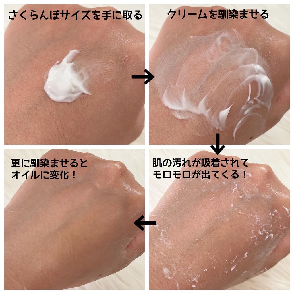 メイク汚れだけでなく酸化皮脂までオフし、なめらかで明るい素肌に整えるクレンジングクリーム。 保湿クリームのように濃厚で厚みのあるテクスチャー。手の上で伸ばすうちはとくに変化がありませんが、メイクとなじむと徐々に層が薄くなる感じ。 オフ後はスキンケア後の肌のような触り心地✨ 乾燥肌でも使いやすい印象です。