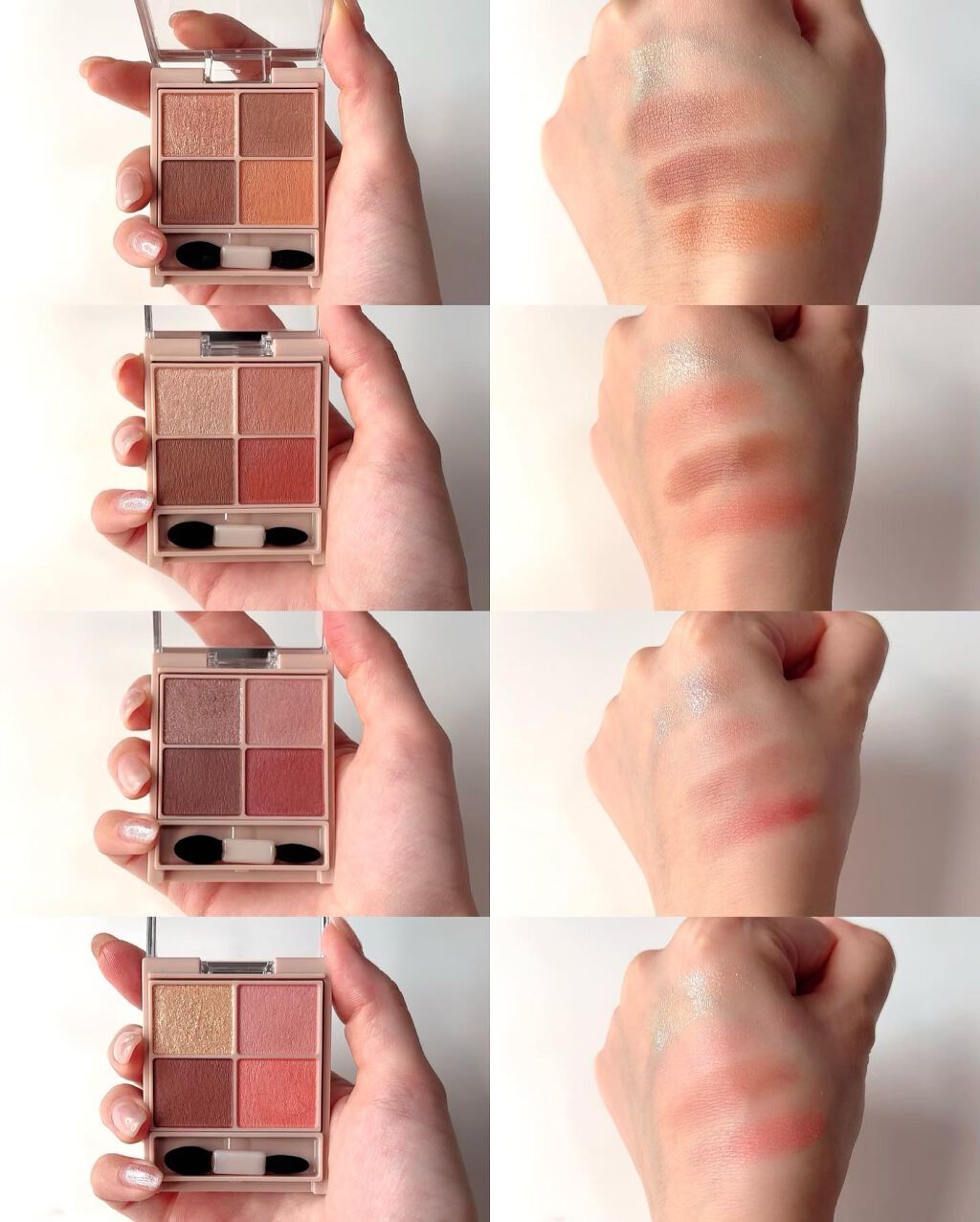 - シルキースフレアイズの姉妹品♡ 肌に溶け込むような透けマットシャドウ 透け感のある柔らかい仕上がりになるマット3色と、透け発色の繊細ラメ1色のパレットシャドウ♡ 完全マットアイや、ラメ×マットアイなど、メイクのパターンを楽しみましょう!