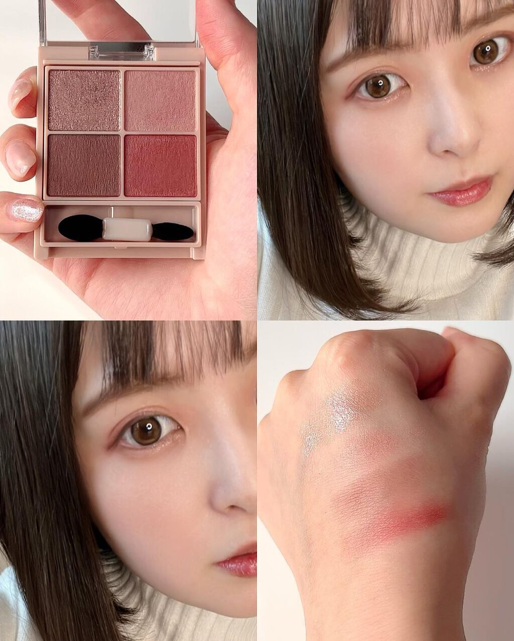 深め×くすみピンクなので、深いカラーが得意なイエベ秋さんにぴったりなんです✨ 粉質はしっとりしていて密着力高め! 右側の2色でグラデを作って、左下で締め色、左上でラメ、と必要なカラー&テクスチャーが厳選されたコンパクトパレット♡ ピンクメイク大好き!という方はもちろん、ピンクメイクが苦手な方でも克服できるのではないかと感じさせるアイシャドウです✨