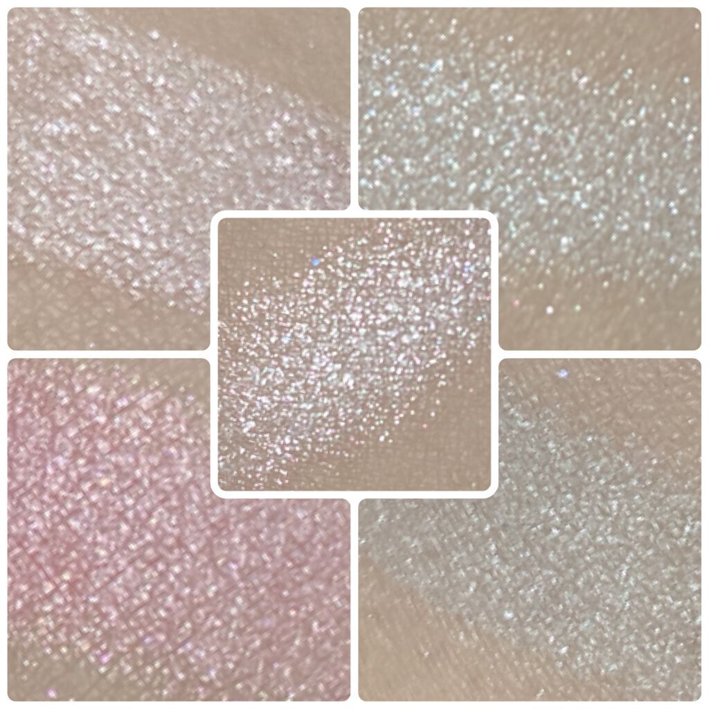 大大大好きなアイシャドウパレットです(ᐡ⸝⸝•̥ ̫ •̥⸝⸝ᐡ)♡♡ とにかく色が可愛い…!! 左上はほんのちょっとだけピンクみがあるホワイトです。ピンクは儚い白みピンクです…♡ こちらを塗るとくすみが飛びます!ただ、ラメも飛びやすいです!笑 アイシャドウベースを使うことをおすすめします。