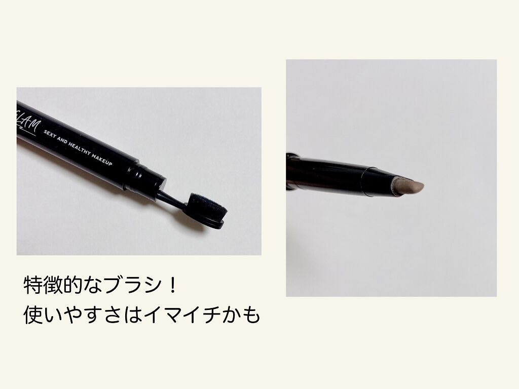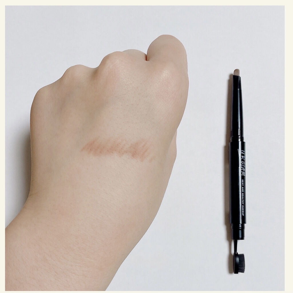 これは発色と芯の細さが完璧です! 少し芯は折れやすいですが、その分柔らかくしっかりと発色して描きやすいです。 さらに極細なので眉尻や毛の足りないところを描き足すのに使いやすいです。 これ一本で眉を完成させるのは難しいため、別でパウダーも併用したほうがいいと思います。 すぐに芯がなくなってしまいます。 後ろについているブラシは細めですが、普通のスクリューブラシとして使えるので便利です。 これは芯の形が三角形のようになっており、細い線も太い線も描くことができます。 細い方のペンシルよりも薄付きなので薄く描けばパウダーのような役割も果たし、一本で眉を描くこともできます。 こちらは芯の消耗が少なく一本で長持ちしそうです。 発色が薄い分毛を一本一本描くのは難しく優しくふわっとした感じになります。 芯が少し硬めで描くのに何度か往復させたり、少し力を入れないと描きにくいです。 後ろのブラシは面白い形をしていますが、私には少し使いづらく感じました。