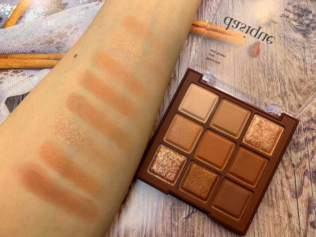 奥ゆかしいチョコレートブラウンムードを詰め込んだアイシャドウパレット🧸 色味はもちろん、アイシャドウが立体的になっていて、本物のチョコレートみたいな、見た目からして可愛い❣️ マットからラメ、グリッターまでバリエーション豊富な9色で、思いのままにアイメイクができる万能パレット🐰