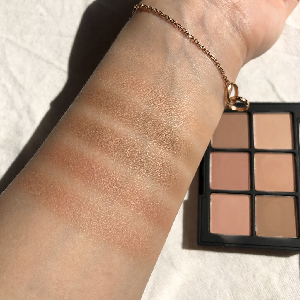 ベースメイクをパウダーファンデでなるべく薄めにしあげています。あまりにも粉っぽくベースを仕上げるとマットアイシャドウの付きが悪くなりそうな気がするので(なんとなく)…😅 パレット左上のベースカラーだけはアイシャドウブラシ(大)それ以外は(小)のブラシで塗っています! 涙袋の影は付属のブラシの細い方で。仕上げに涙袋に左上のベースカラーを少しのせると涙袋がふっくら見えてオススメです◎!