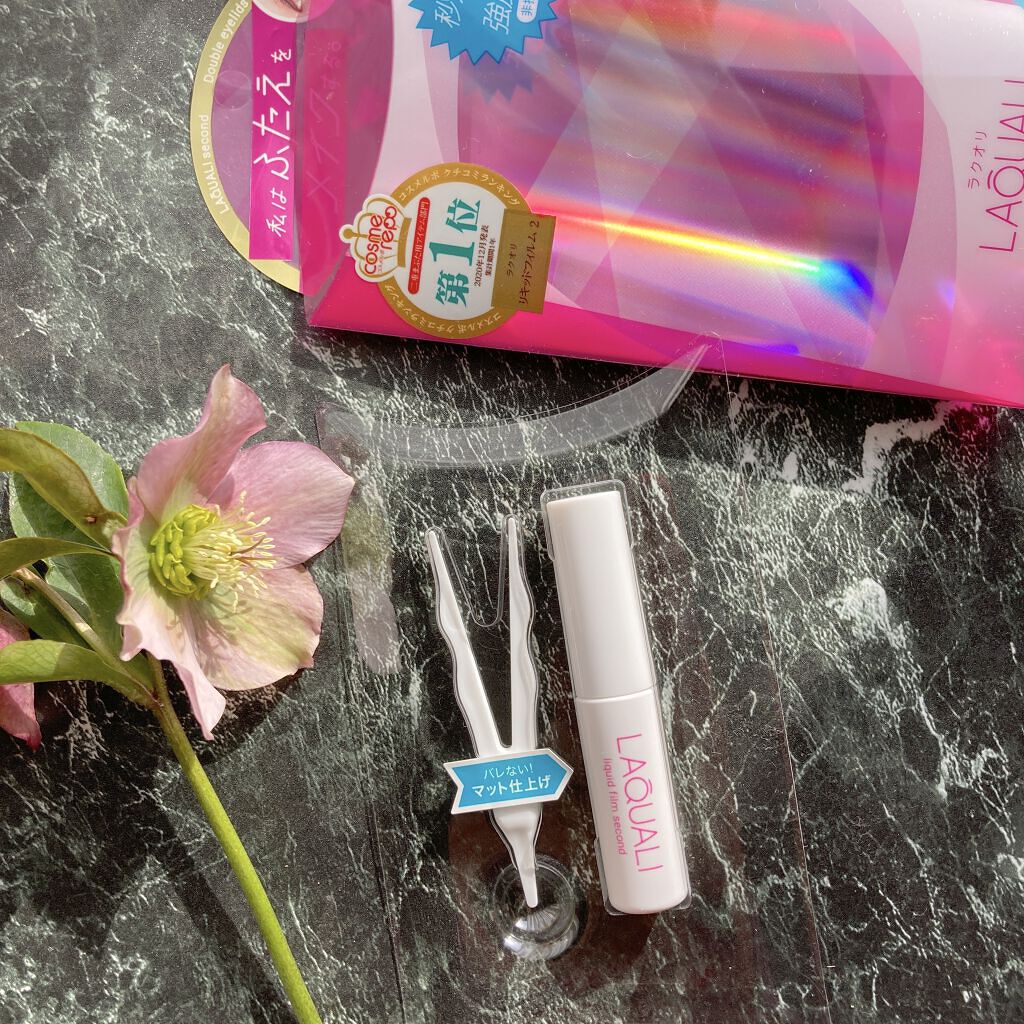 ラクオリ リキッドフィルム 2 シナモロールとのコラボパッケージ🐰 1,540円(税込) まぶたをくっつけないから、瞬きがラクで自然なのが良いなぁと思ったよ! お湯オフだよ!落としたいときはぬるま湯を含ませたコットンなどでふやかしてオフするだけだから簡単♪