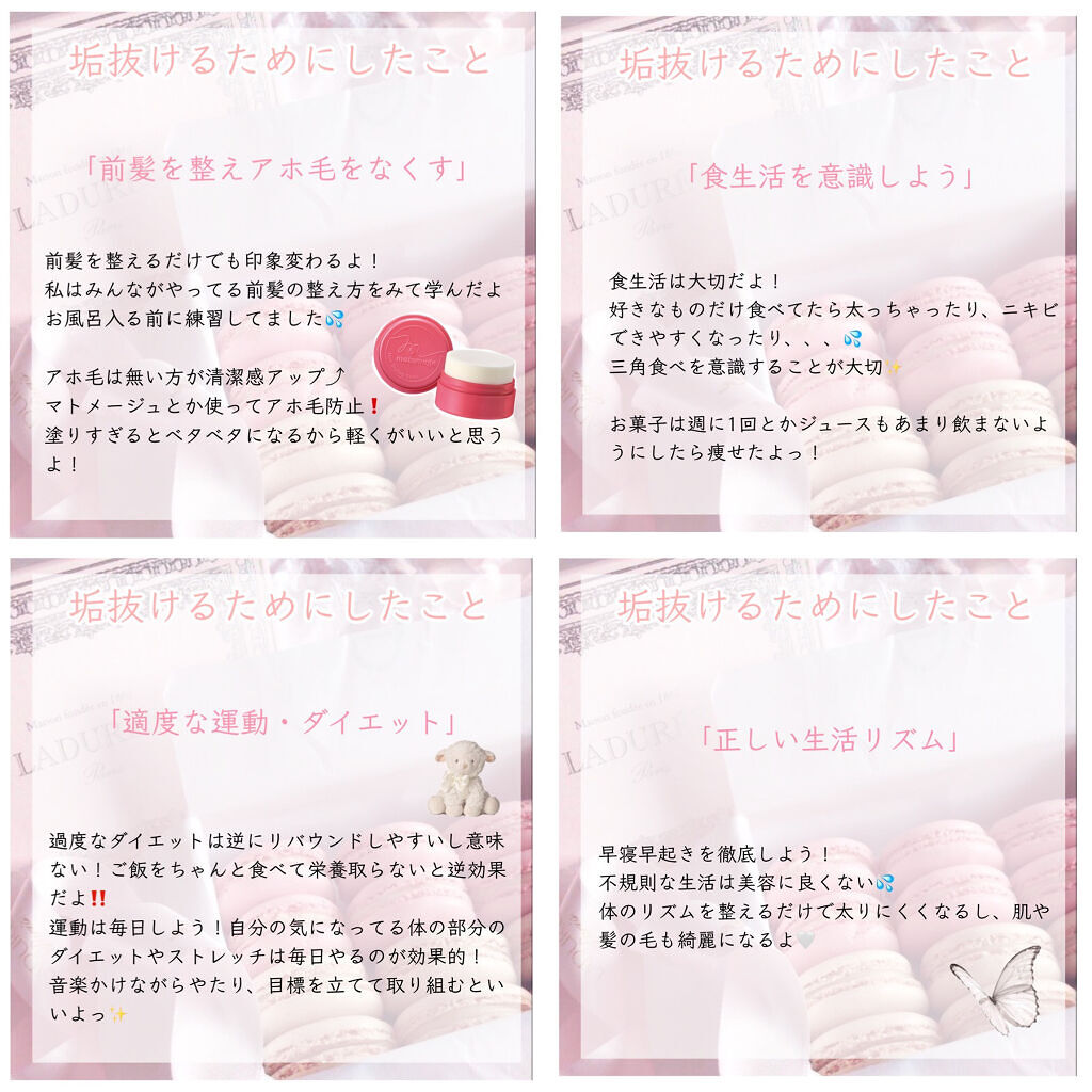 可愛くなりたい🤍 モテたい🤍 日焼け止めを塗るのを徹底 眉毛を整える 前髪整えてアホ毛をなくす 食生活を意識 適度な運動とダイエット 正しい生活リズム 自分の骨格を知る 自分に合ったメイク研究💄 スキンケアの徹底 自分のパーソナルカラーを知る