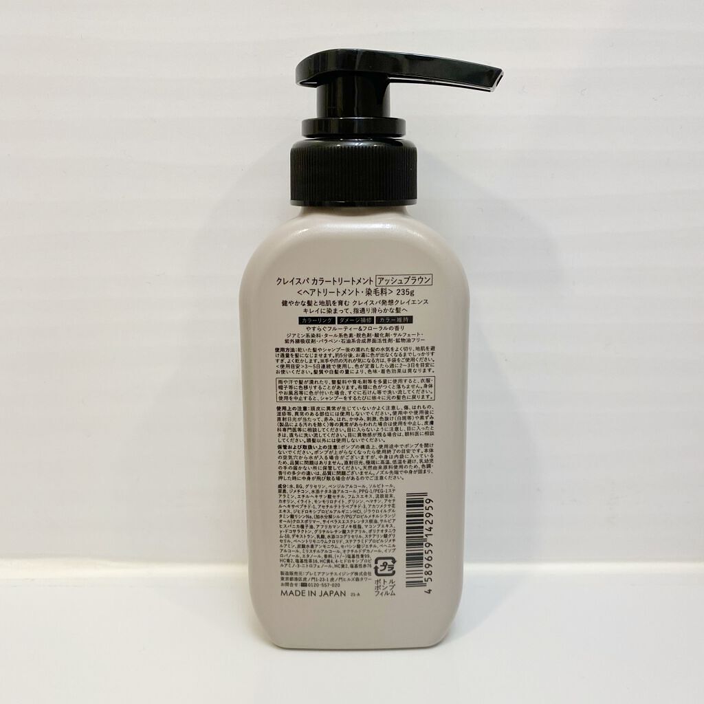 - 5分で美しい髪色へ 負担なく染めるクレイスパ発想の極上トリートメントカラー 髪と頭皮を育む5 種のクレイ※1 を配合したカラートリートメント。 髪に塗布したら5分で洗い流すだけ。 髪や頭皮を傷めることなく、透明感のある美しい髪色に染め上げます。 同時に白髪の根本原因にアプローチしながら、美しく強い黒髪を育む黒髪プラス成分※2 や地肌ケア成分 ※3 も配合。 さらに、カラーリング効果に加えてこだわったのがトリートメント効果。カラーの流出を守りながら、髪のダメージを補修し、なめらかな指通りとつややかな髪へ。髪色は好みに合わせて選べる4色をラインナップ。 ※1 カオリン、イライト、モンモリロナイト(吸着成分)、フムスエキス、流紋岩末(保湿成分) ※2 ヘマチン、アセチルヘキサペプチド-1(毛髪補修成分) ※3 アセチルテトラペプチド-3、アカツメクサ花エキス、ポリクオタニウム-110、ジヒドロキシプロピルアルギニンHC( l 毛髪補修・保湿成分)