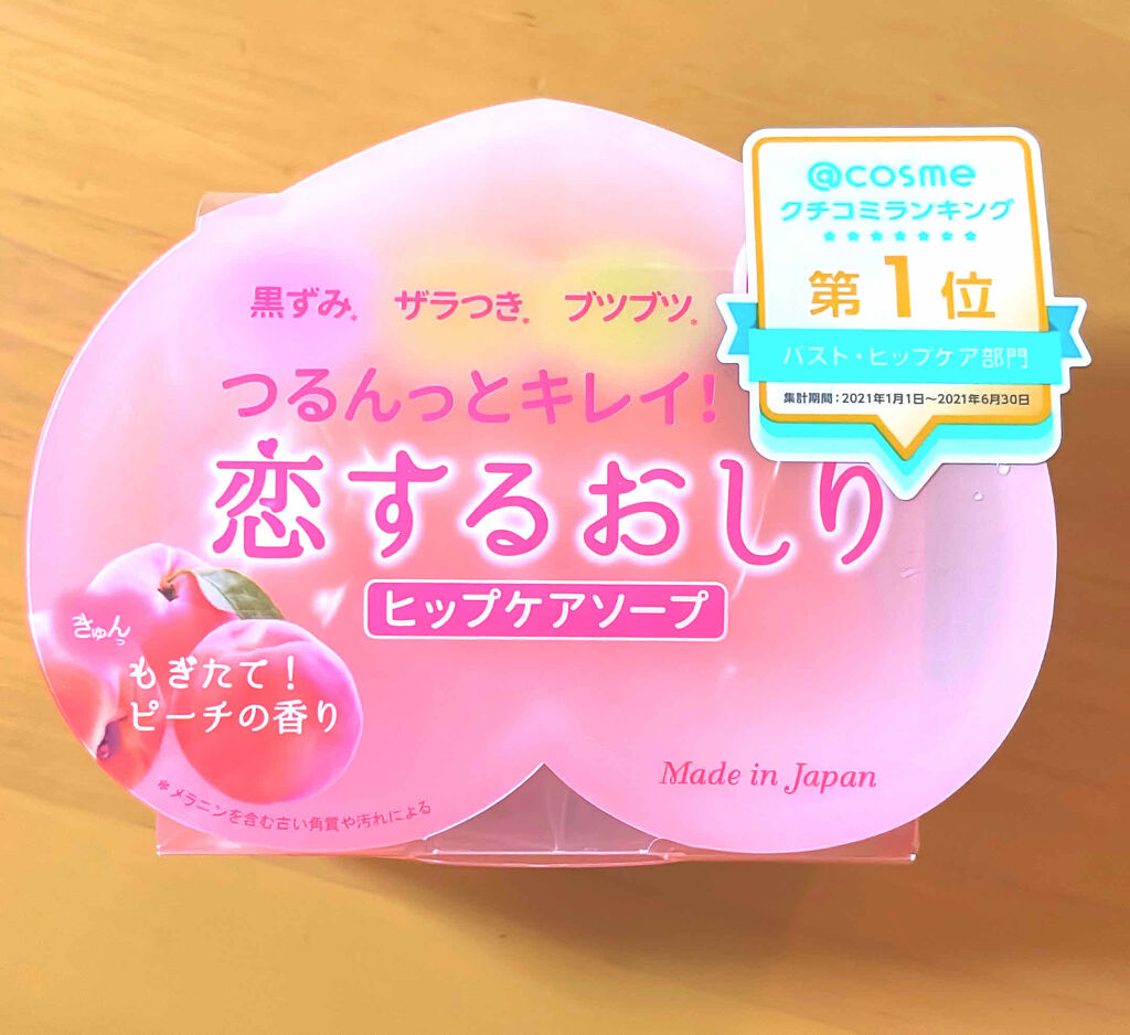 - 恋するおしり ヒップケアソープ おしりの黒ずみ・ザラつき・ブツブツにくるくる直接洗いの簡単ケア! (1)余分な古い角質を落とす:角質ケア スクラブ※1&ピーリング成分※2配合 【モモ核、マンナン※1 グルコノバクター/ハチミツ発酵液、 リンゴ酸・乳酸・クエン酸※2】 (2)必要なうるおいを守る:保湿ケア 6種※3の美容保湿エッセンスを配合 【モモ葉エキス、モモ種子エキス、ビワ葉エキス、キウイエキス、 アーチチョーク葉エキス、アロエベラ液汁※3】 ◎「きゅんっ」とする もぎたて!ピーチの香り