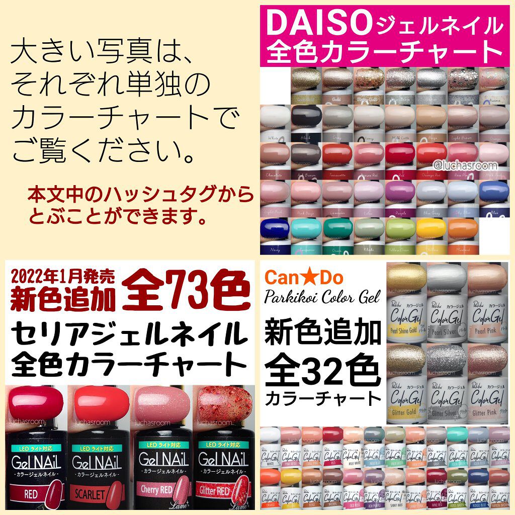 完全版!!セリアの全色カラーチャート💅🏻セリアのジェルネイルについては公式ホームページや公式Instagramがないため、今までは「抜けている色があるかも」「廃番色が含まれているかも」な「全色(?)カラーチャート」でした💦しかしこの度セリア様...