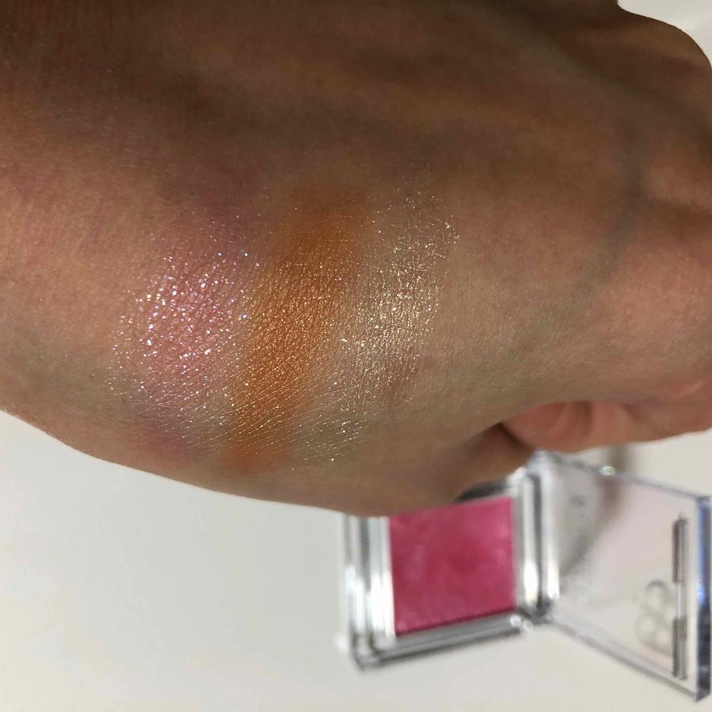 肌が白い私は悩みに悩んでいちばん明るそうなカラーで目元にも色んなところに使えそうな方を選びました このオレンジ色のラメが何色のアイシャドウに合わせても可愛くて愛用してましたが、蓋が壊れてからは使ってません笑 シルバーのラメって何にあうんだろうって思ったけどどれに合わせても最高で未だに好きです!