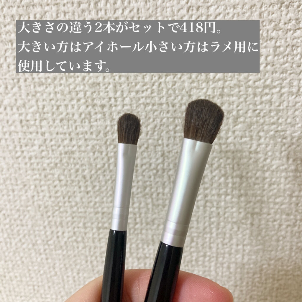 ロージーローザアイシャドウブラシセット ¥528天然毛100%のパウダーアイシャドウ専用ブラシ。大きいブラシはまぶた全体やフワッとぼかす用、小さいブラシはまぶたのキワや締め色にオススメ。チクチクせず、肌辺りが良かったです。アイシャドウをふんわ...