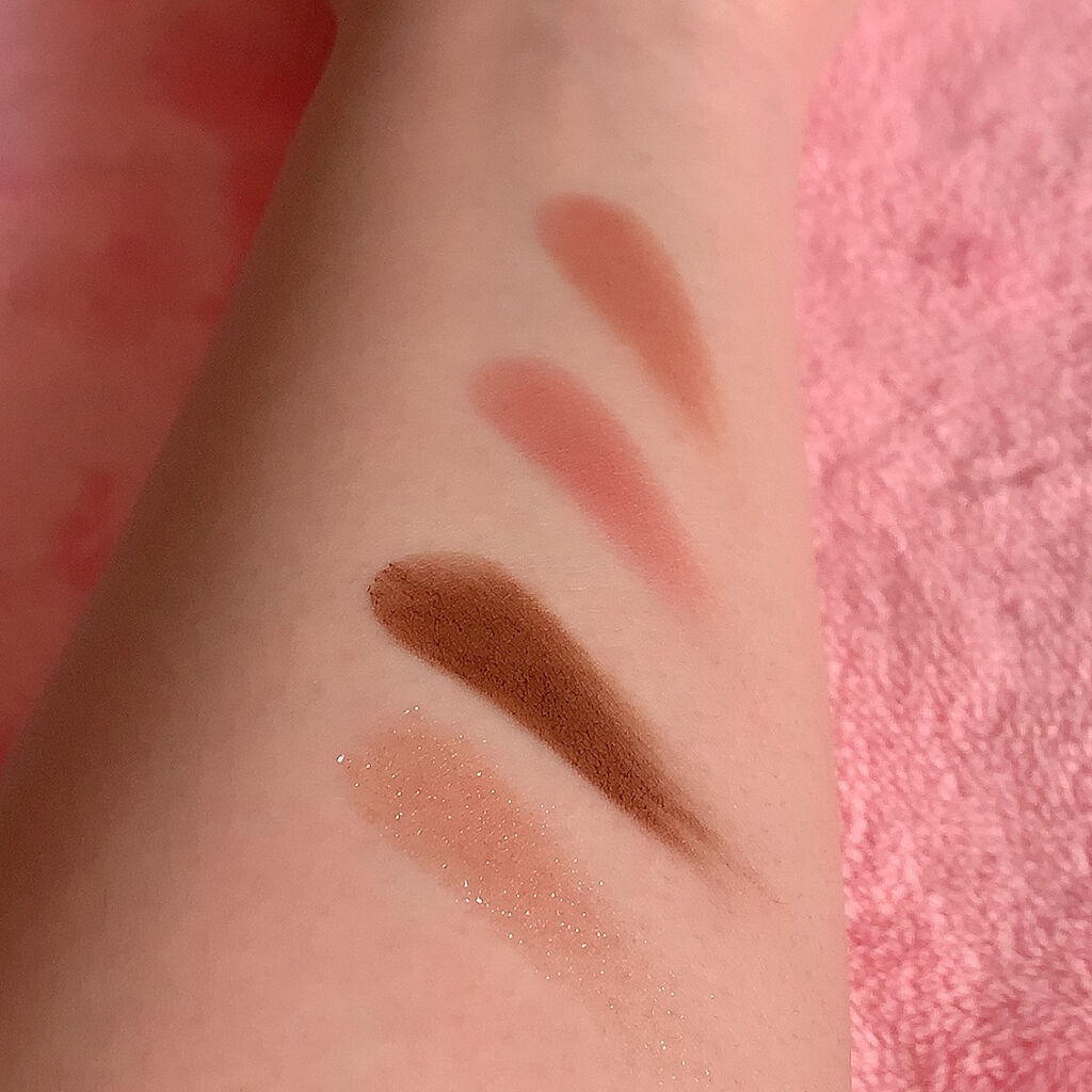 muiceのラメはギラギラっていうより濡れ感ラメみたいなラメであんまラメの主張がなくてラメ度強いのは苦手っていう方におすすめ WHOMEEのラメはちょっと発色もありつつラメとあるっていう二刀流✨ ADDICTIONの煌めきがもう大人っぽいし密着力もあっていい意味で言葉が出てこない😂