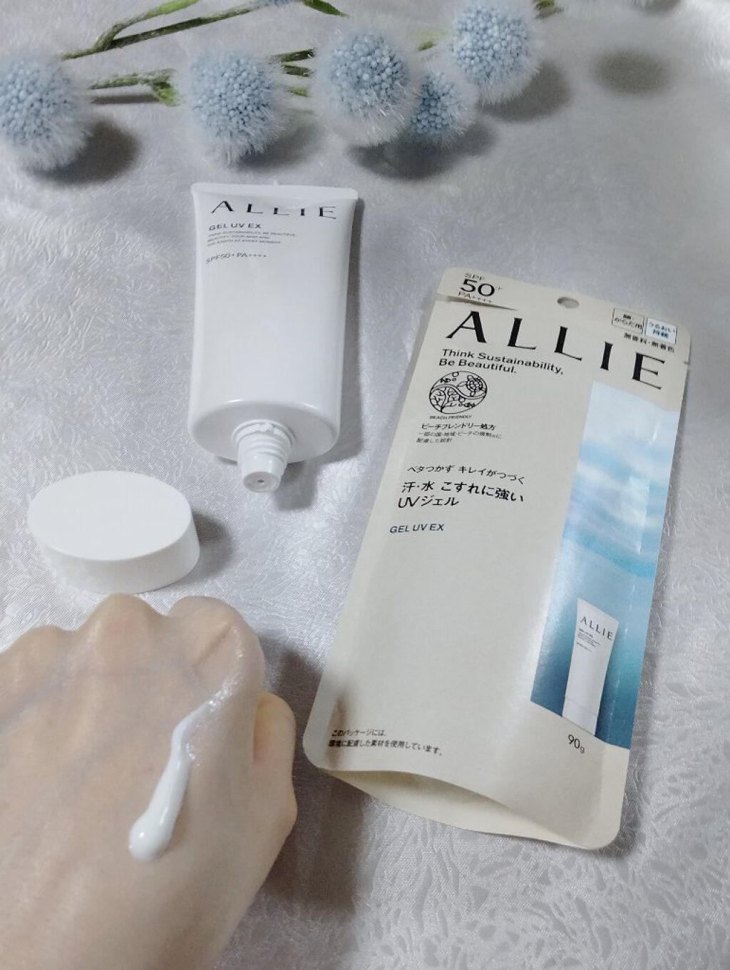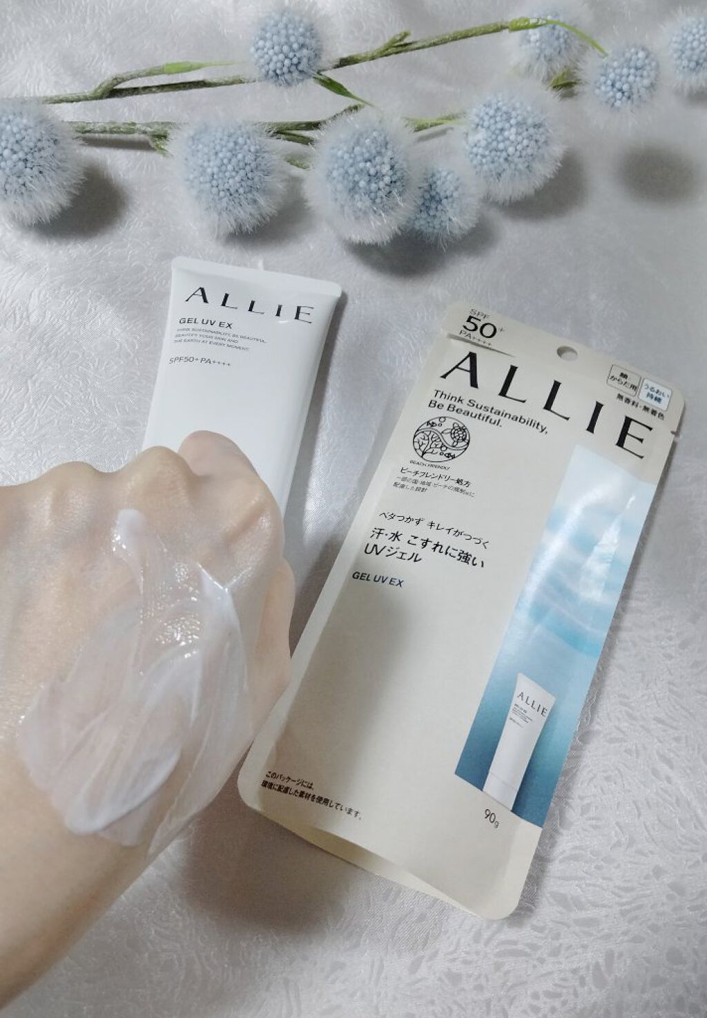 - 世界を想う 美しさつづく*1 日やけ止め おでかけには、落ちにくく、気持ちいい感触がつづく日やけ止めを。 一部の国・地域・ビーチの規制に配慮した設計のビーチフレンドリー処方。 汗・水・こすれにも強く、ベタつかずうるおう仕上がりが持続するジェル UV ●一部の国・地域・ビーチの規制に配慮した設計の「ビーチフレンドリー処方」 ●SPF50+・PA++++ ●汗・水 こすれに強く落ちにくい フリクションプルーフ・スーパーウォータープルーフ ●ベタつきにくい感触がつづく ●うるおい感のある肌仕上がりがつづく ●環境に配慮した素材を使用したパッケージ採用 ●美容液成分(保湿)ヒアルロン酸Na配合 ●顔・からだ用 ●洗顔料・ボディーソープで落とせる ●マスク・タオル等につきにくい ●化粧下地効果 ●無香料・無着色 ●チリ・ほこり・PM2.5・花粉等の微粒子汚れの付着を防ぐ*2 *1 スキンケア効果またはメイクアップ効果による肌仕上がりのこと *2 チリ・ほこり・PM2.5・花粉等すべての微粒子汚れの付着を防ぐわけではありません <限定セットA:セット内容> ・アリィー クロノビューティ ジェルUV EX 90g ・アリィー クロノビューティ ラスティングプライマーUV 5g ※セット商品の成分につきましては各商品ページでご確認ください。