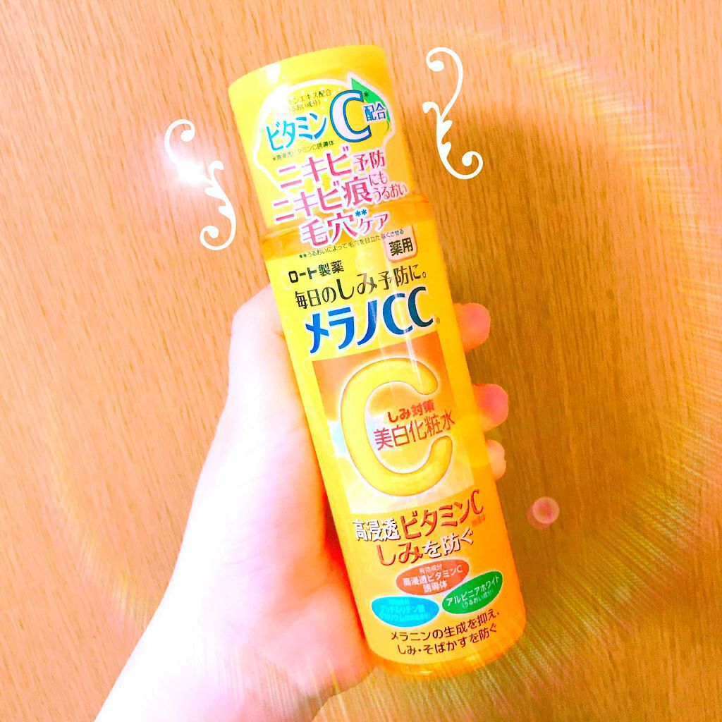- 「メラノCC 薬用しみ対策 美白化粧水」は、顔全体にうるおいを与えながら、しみ対策できる薬用美白化粧水。 美白有効成分高浸透ビタミンC誘導体*1が角質層すみずみまで浸透し、メラニンの生成を抑え、しみ・そばかすを防ぎ、透明感のある肌へと導きます。 また、抗炎症成分*2と3種のうるおい成分*3を配合。ニキビ痕が気になる肌にもうるおいを与え、肌を整えます。 さわやかな柑橘系の香りです。 *1:3-O-エチルアスコルビン酸 *2:グリチルリチン酸ジカリウム *3:アルピニアホワイト、レモンエキス、グレープフルーツエキス
