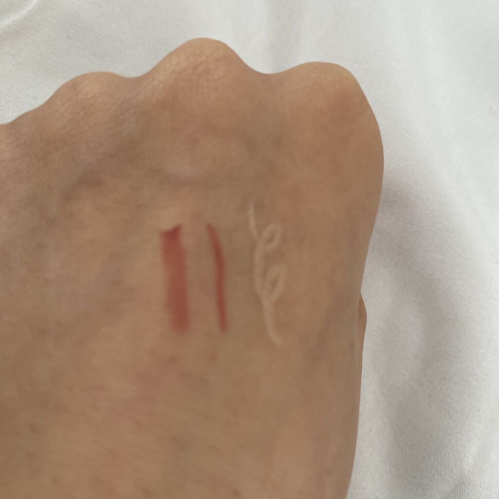 下瞼にアイボリーカラーとニュアンスピンクカラーを塗って白目が大きく見える目元に👀 スルスルと滑らかな描き心地で擦っても落ちない👏 アイボリーカラーの方は丸芯、ニュアンスピンクカラーはしずく型で細い線も太い線も描けるけれど、慣れてないので少し使いにくいと感じました