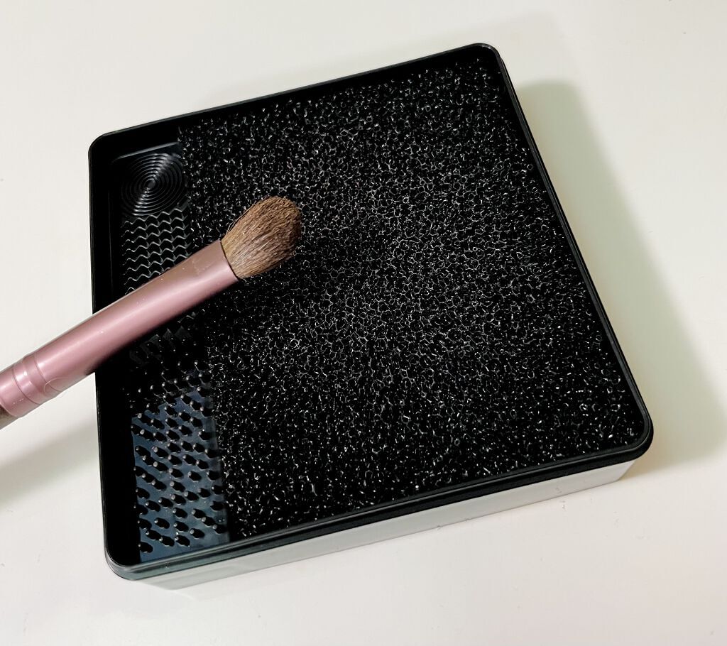 - メイクブラシの汚れ水を使わず簡単に落とします。 さっとこするだけです。 毛が短いブラシの奥までかきだしやすいです。 サッとこするだけ即リセット! メイクブラシのカラーもラメもしっかり落とします。