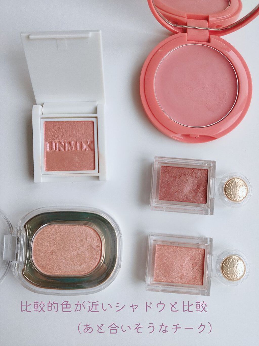 ほわんとした ぼかしカラーです 控えめなで上品ラメがきれいです 儚げメイクに合いそうです🙏 ブルベの明るめの色が得意な人が、アイメイク濃いめにする時は、チークはこれだけでもいいかも エレガンスクルーズの アイカラーミジェット MN01が好きな人にはハマるかと! ブルベ夏にいいのかも? 無限リピートアイテム候補です