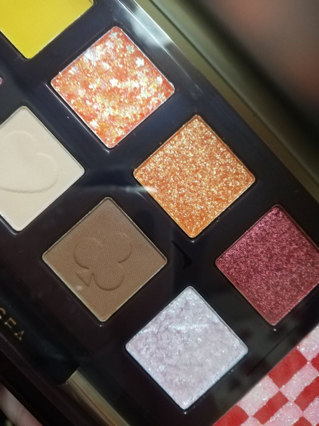 パッケージの上蓋がウォーターシールみたいにスパンコールが揺れ動くオシャレな作りで、オシャレなデザインなのが魅力。 ラメがめちゃくちゃかわいいしマットカラーの発色がえげつないのよ。 落ち着いた色合いのマットカラーも入ってるから意外と普段メイクにも使えちゃうというね。