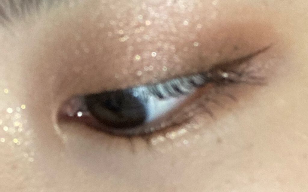 オレンジっぽいかなと思ったのですがつけると無色に近いベースにシルバーのグリッターがつきます。 グリッターは角度によってはオレンジっぽくなります。 ちょっとつけたい人は綿棒とかに取ってつけたいところだけにのせるほうがいいかなと思います! 難点は乾くのに時間がかかること。 目元だけでなく夏の海や冬のイルミネーションの時は頬の高いところにポイントでつけるのもいいなと思いました!