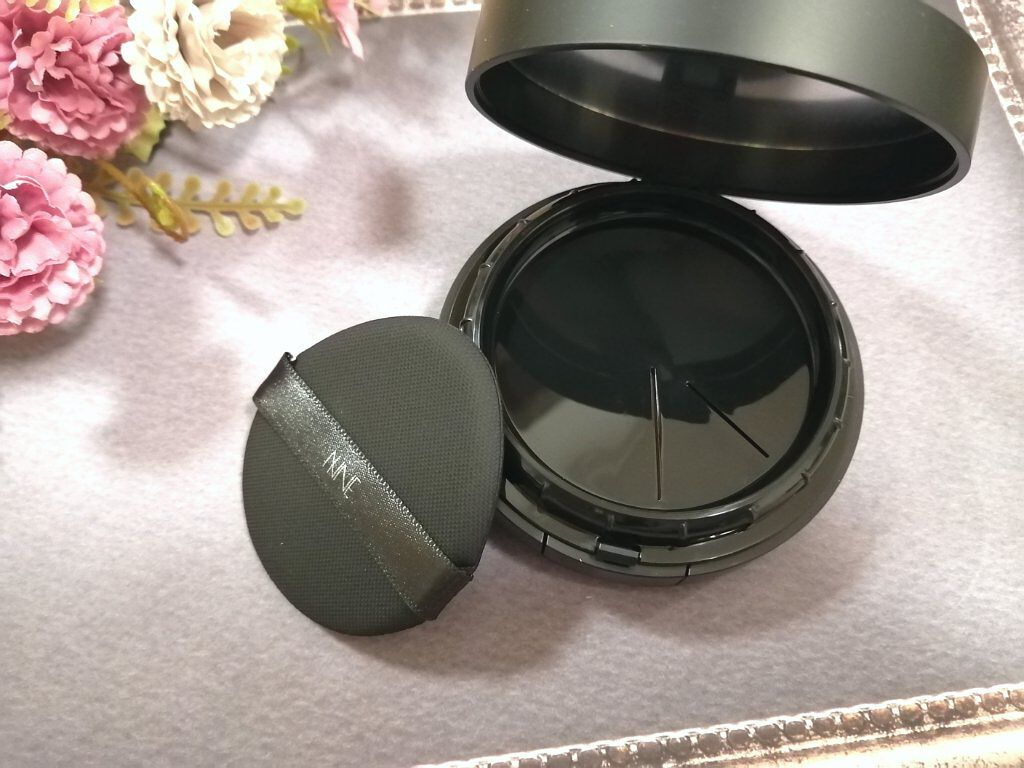 こちらはUVケアも◎ セッティングも簡単に装着できます😁 このブラック色したシンプルデザインの容器も素敵ですよね♡ パフにトントン馴染ませて肌にのせて みると少ししか取っていないのに、つきがよいですね。みずみずしいテクスチャです。 トントンなじませて伸ばしていくと 厚塗り感を感じさせない使用感です。 パフには、ほんの少しつけて内側から外にかけてポンポンと伸ばしていくのが ポイント。 つい、クッションファンデはたっぷりに なっちゃうけどほんの少しで良い◎ そうするとむらなく均一に肌にのせる ことができるね🥺