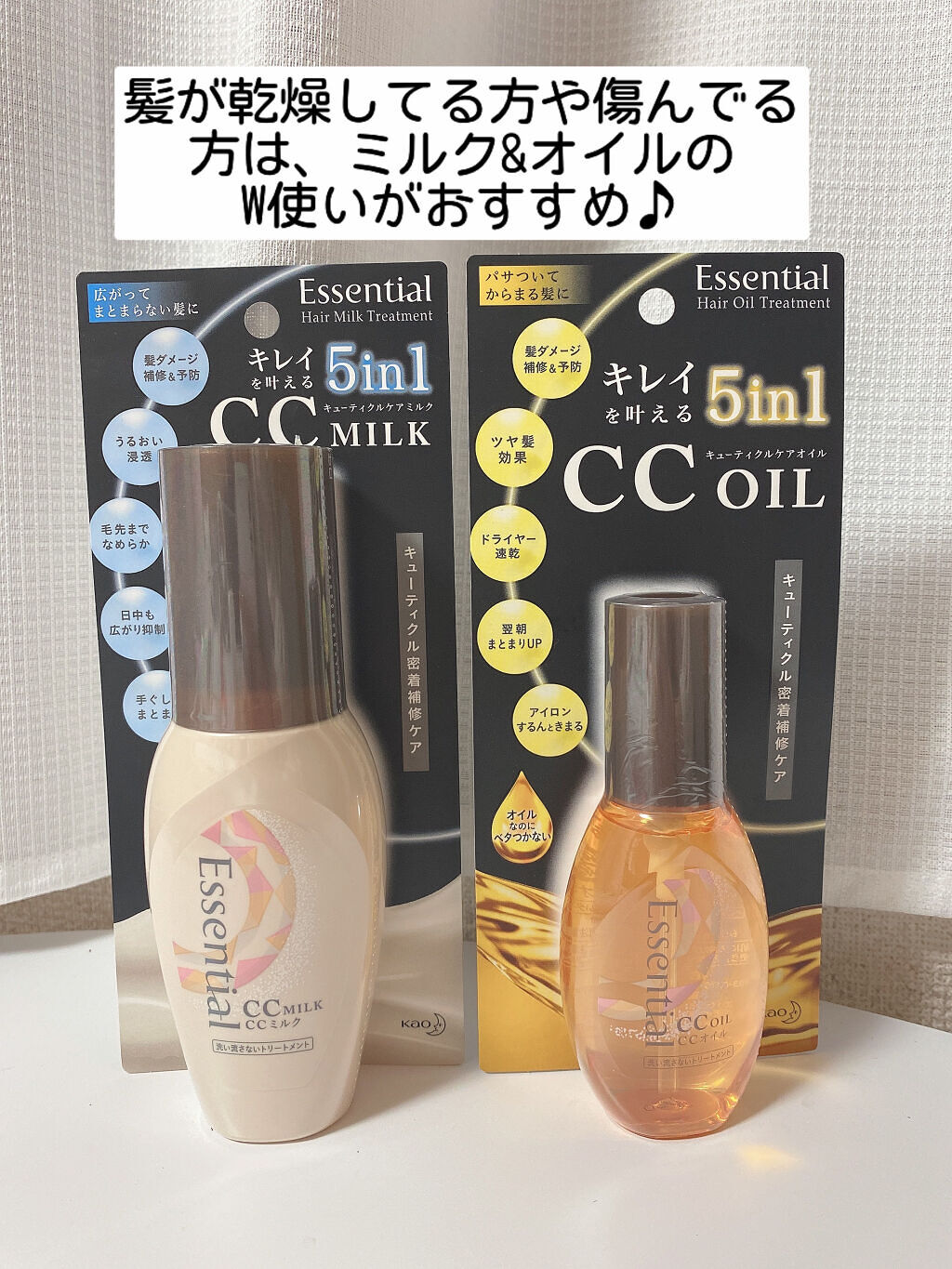 知る人ぞ知る、エッセンシャルの隠れた人気アイテムがこの度リニューアル🎉 「CCミルク、CCオイル」 驚きのコスパに、エッセンシャルやっぱり凄い!!ってなった🙏 髪に塗布して馴染ませるだけでいい! 成分、使用感、仕上がり、価格、これ全て、私は素晴らしいなと思いました🙏