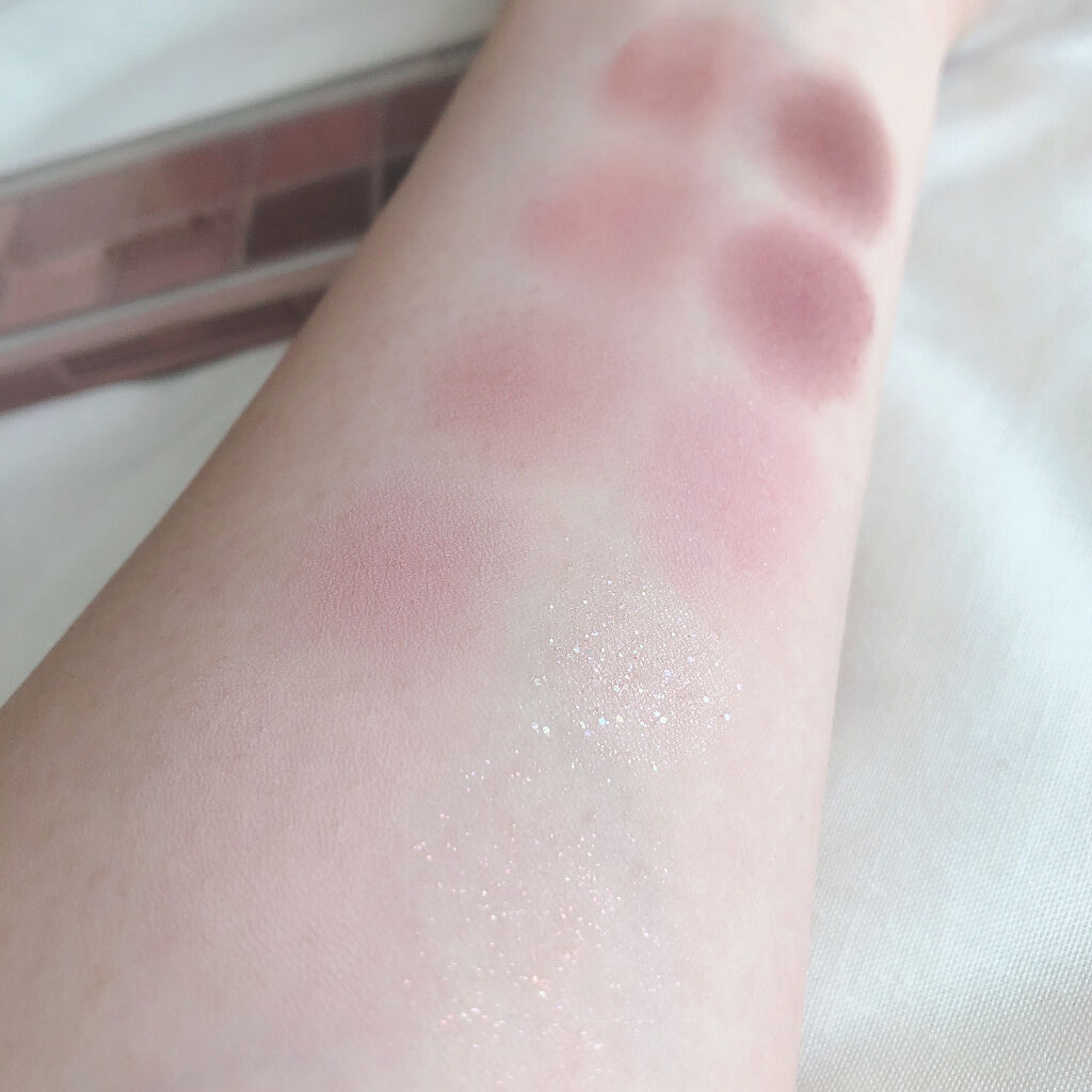 物静かなミュートトーンにロージ色が加えられたディープなミュードロージ&パープルの組み合わせ🎀 しっとりめの粉質で粉飛びしにくくふんわり発色だけど色がちゃんと付く◎ 全色使いやすい色味でこれ1つでアイメイク・眉・チークを仕上げられるからお泊まりの時にも便利だと思った🌷