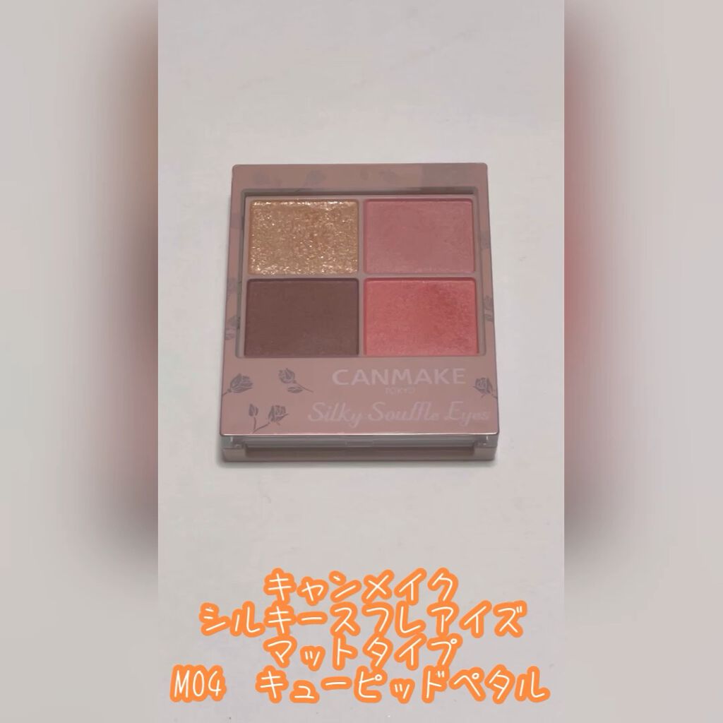 💫今日のアイシャドウ💫★キャンメイクシルキースフレアイズ(マットタイプ)M04キューピッドペタル幸せ溢れるコーラルピンク右上から時計回りに使っていくうわ瞼に左上のラメカラー乗っけて完了!ふんわりコーラルピンクアイです⋆⸜🙆♀️⸝⋆...