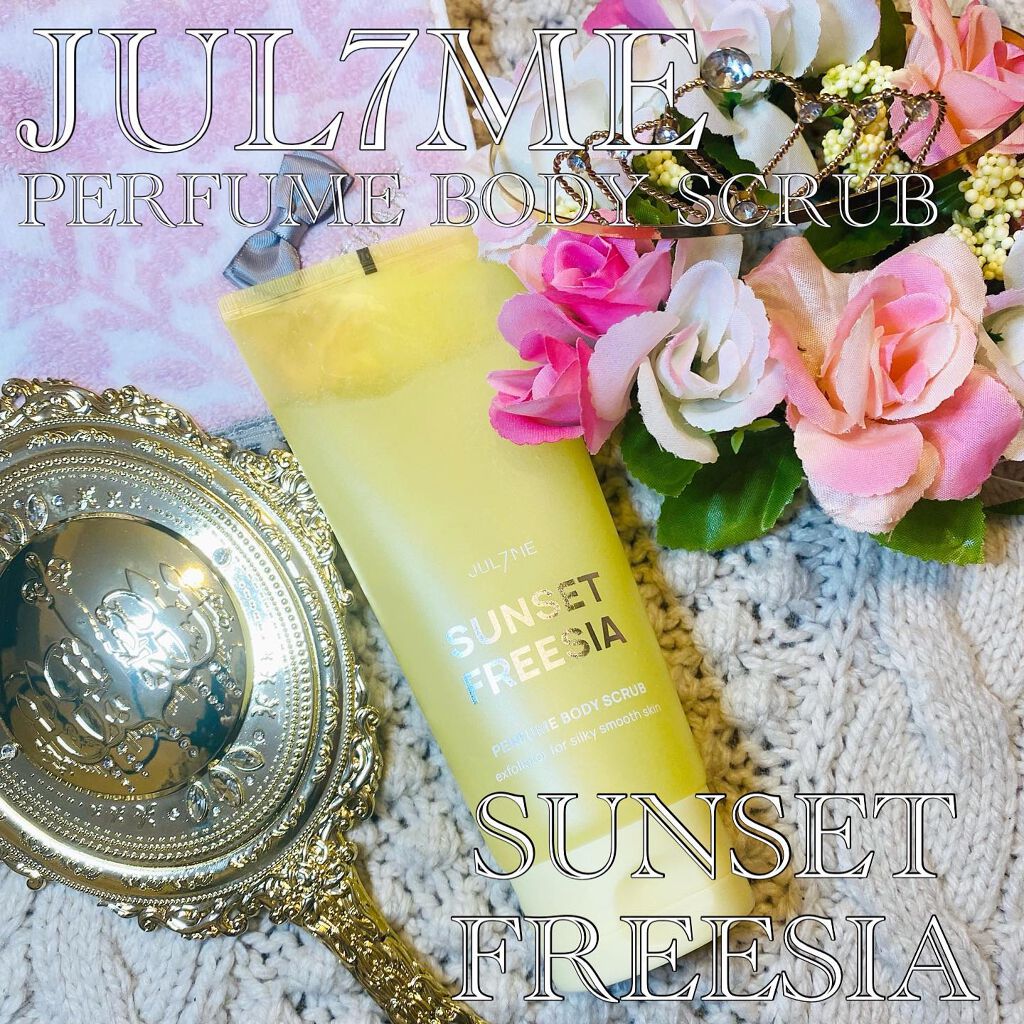 - \角質 除去 ケアパフュームトーンアップボディスクラブ 200ml/ 体の角質や脂ギッシュな体をやさしくケアしてくれるJUL7MEのボディスクラブ🤍 〇塩ではなく肌にやさしい砂糖のスクラブで作っている為、低刺激処方 〇角質ケア 〇保湿&うるおい 〇ココナツオイル配合なのにべたつかずしっとり仕上がります。 香りは5種類 ・サンセットフリージア ・フルブルーム ・ウッディー&ムスク ・アーバンローズ ・バニラプロポーズ