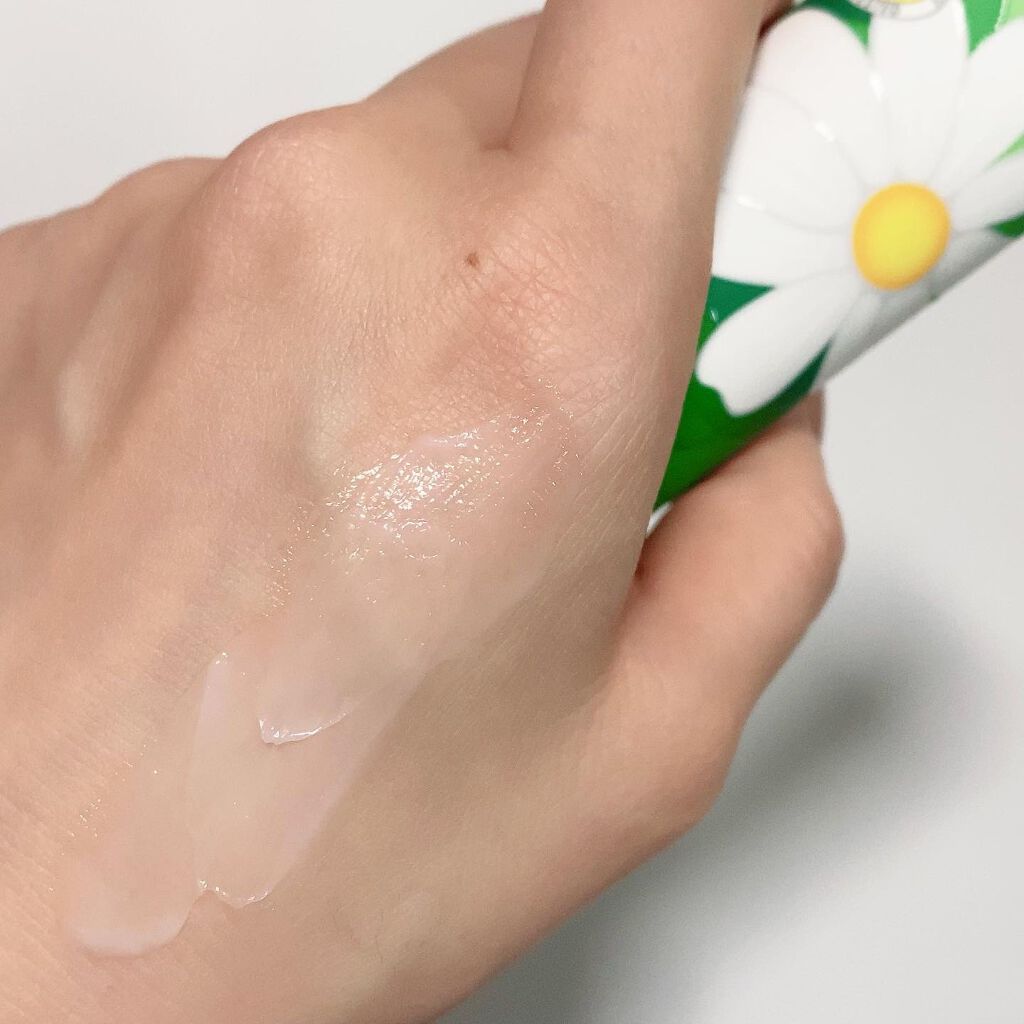 - 水、グリセリン、ジメチコン、ステアリン酸グリセリル、セテアリルアルコール、パルミチン酸エチルヘキシル、PG、セテアリル硫酸Na、フェノキシエタノール、カプリリルグリコール、カミツレ花エキス、香料、ビサボロール