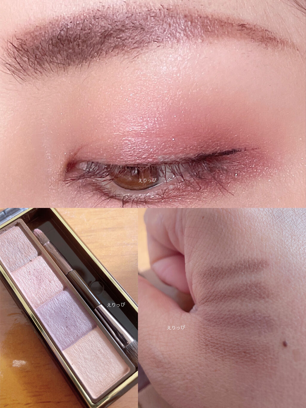 ⚠️目のドアップあります⚠️いつもいいね!💬ありがとうございます♡今日はトムフォードです!こちらはピンクというかなんというのか絶妙な色です!今日はブラウンと混ぜて使ってます!では、左上を眉下に右上を二重幅上に左下と右下を混ぜて二重幅にふんわり...