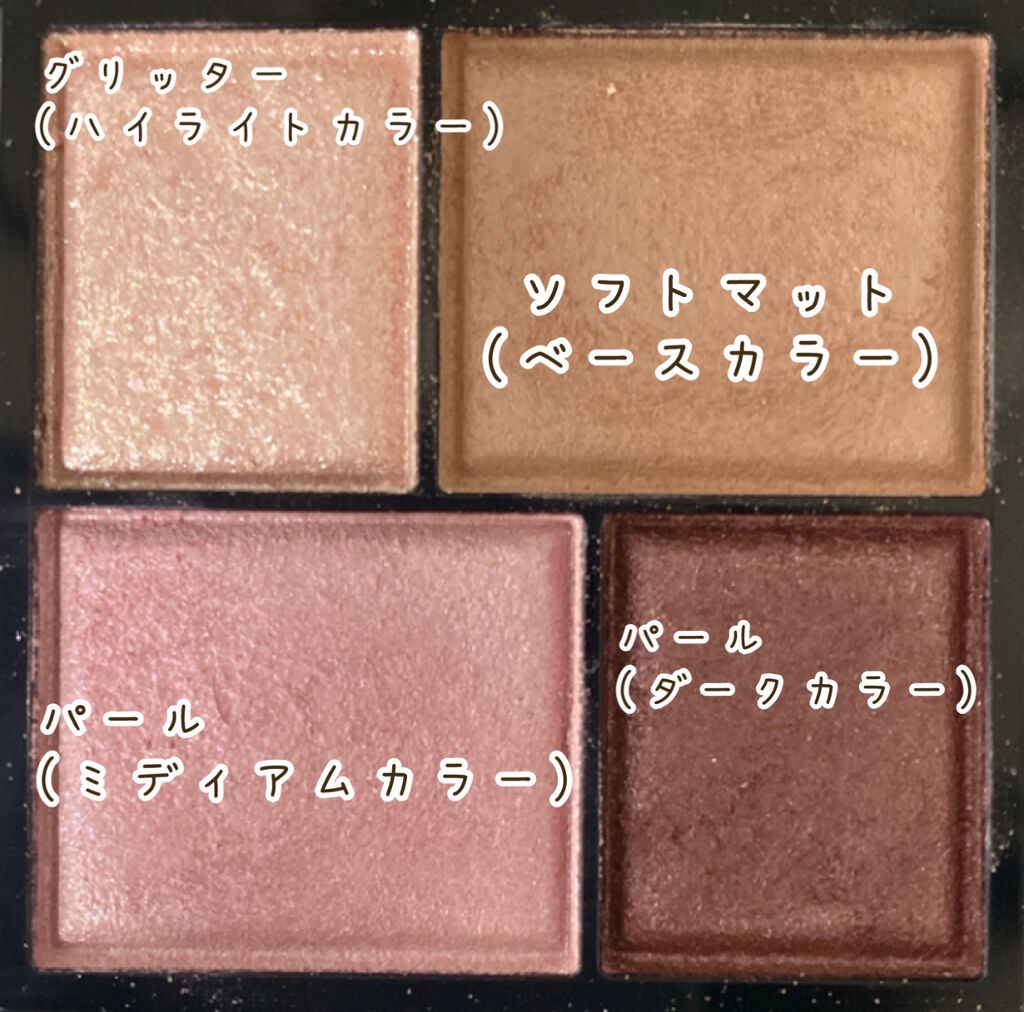 - 質感ミックスで上品にツヤめくアイカラーパレット ◇異なる質感で魅せる上品なツヤを演出 グリッター・マット・パールの3つの異なる質感の4色が入ったパレットで、上品なツヤや抜け感のある目もとに仕上げます。◇重ね方を変えることで、印象の違うアイメイクが楽しめます。 ◇しっとり密着して、美発色をキープ なめらかなパウダーがまぶたにしっとりとフィットして、つけたての美しい仕上がりをキープします。 ◇美容液成分配合 カモミラエキス(うるおい成分)配合。