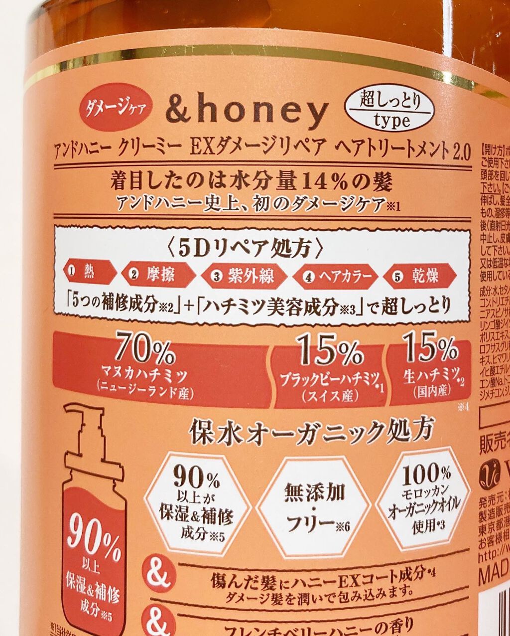 商品詳細情報&honey Creamy EXダメージリペアシャンプー1.0/ヘアトリートメント2.0