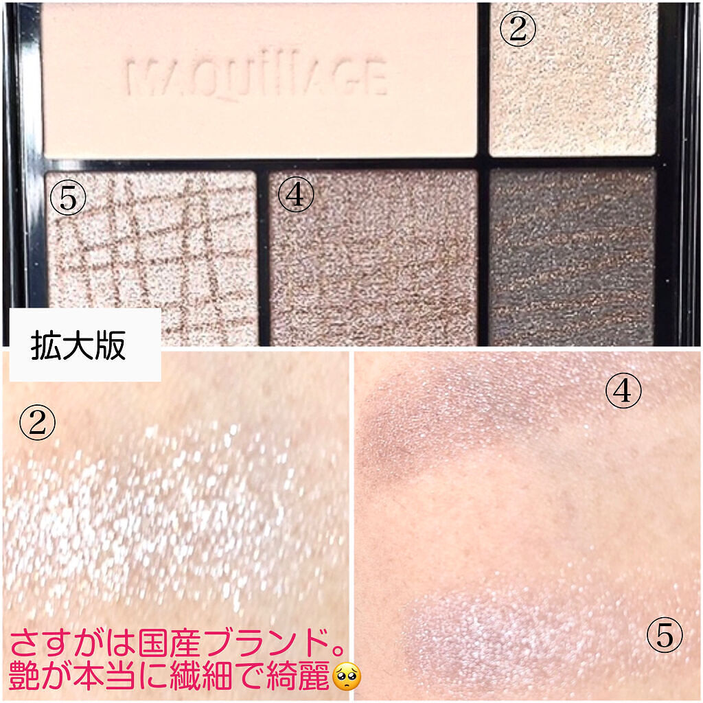 - 瞳色になじむことで、目を自然に大きく見せるアイシャドウ。 200人以上の瞳色研究から生まれた、瞳色に合わせて選べる5つのカラー。 パレット下段の3色のブラウンを左から順に重ねると陰影が際立つ仕上がりに、右から順に重ねると繊細な陰影で優しい印象に。 8時間化粧もち(色・つや・くすみのなさ)データ取得済み ※メーカー調べ。効果には個人差があります。 保湿成分「スーパーヒアルロン酸(アセチルヒアルロン酸Na)」配合。