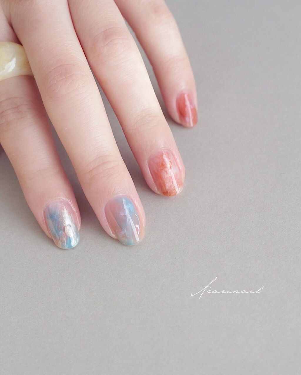 どれもくすんだ色味だから カラフルでも柔らかな雰囲気でかわいい☺️💓 P001のラメポリッシュから 星のホログラムだけ取り出して、 アクセントとして ちょんちょんと1つずつ付けました😉💫