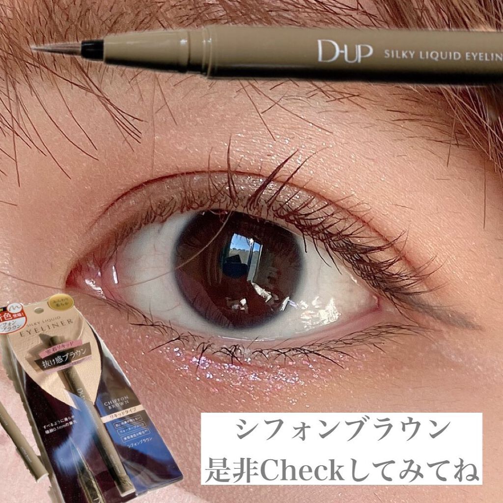 ディーアップ初のラメライナー、繊細なシルバーとブルーのラメが美しすぎて…しばらく筆先眺めてたわ…まさに星屑🌌✨ ラメ全然つかない!とか、なんかかすれちゃう…とかなく、均一にきれいに引ける。 王道ブラウンの使いやすさはそのままに、繊細なラメが瞳をきれいに引き立ててくれる。