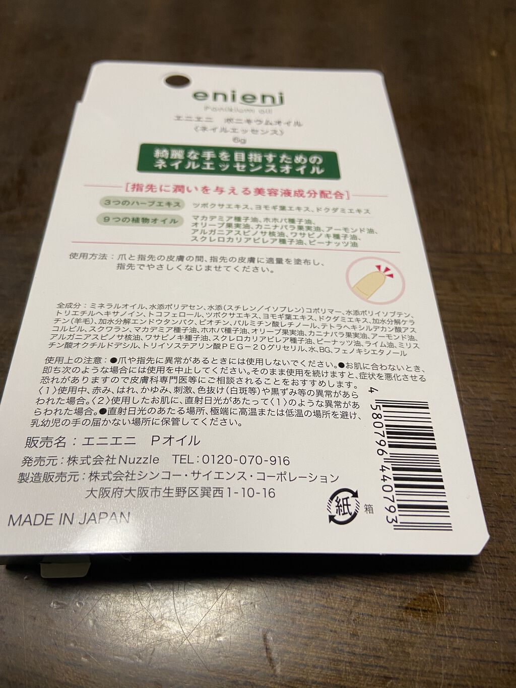 enieni ポニキウムオイル 6gネイルオイル欲しいなぁと思っとったら半額になっとって550円くらいで買えた✨フレッシュライムの香り🍋🟩チューブタイプで、押したらオイル出てくるから手軽に使える!べたつきもそんな気にならず使いやすい。マニュ...