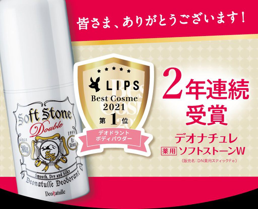 - LIPSベストコスメ2023 殿堂入りLIPSベストコスメ2022 デオドラント部門1位LIPSベストコスメ2021年間 デオドラント・ボディパウダー 第1位LIPSベストコスメ2020年間 小カテゴリ デオドラント 第1位