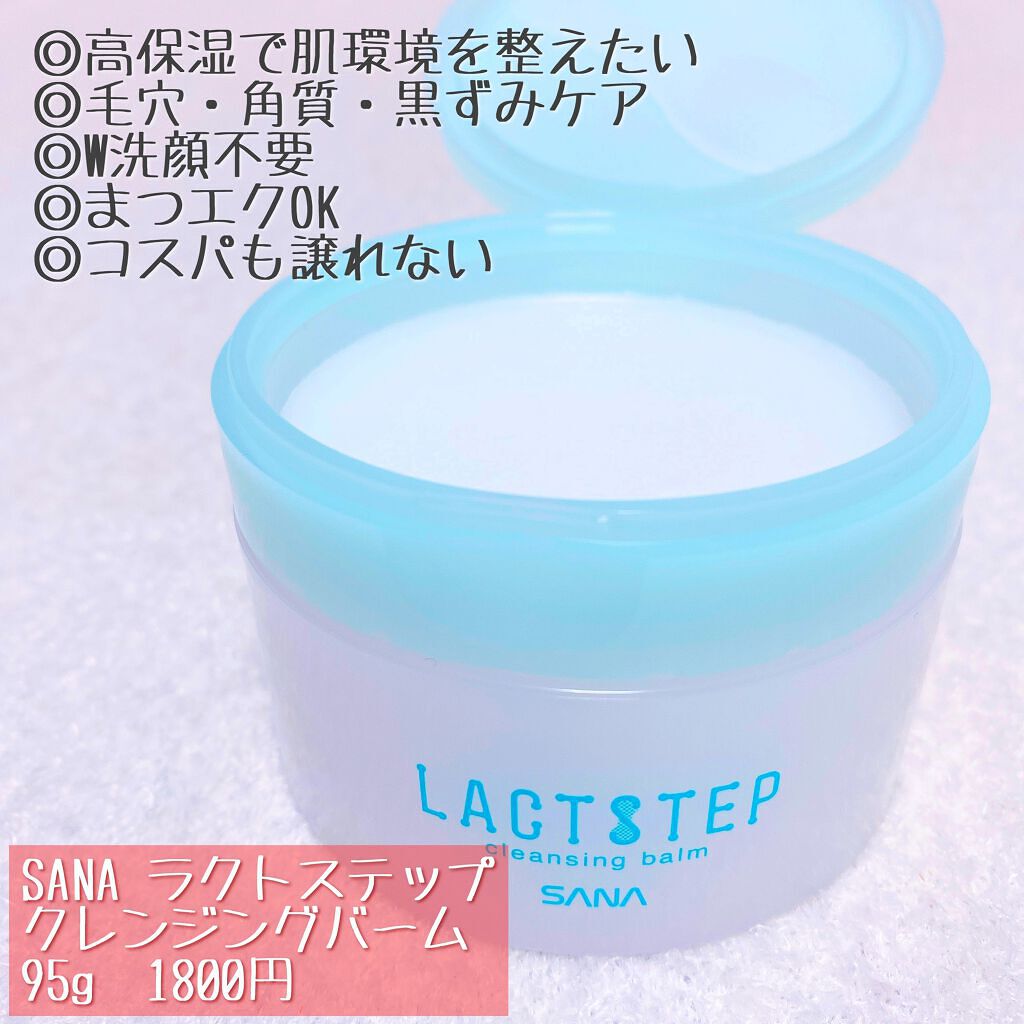 サナ ラクトステップ クレンジングバーム洗うたび、肌環境を整える美肌菌に着目したクレンジングバーム最近よくみる美肌菌✨は、よく分からないけど肌にのせるとじゅわっと溶けてメイクに馴染み、洗い上がりはしっとりするけど、W洗顔不要なだけあってちゃん...