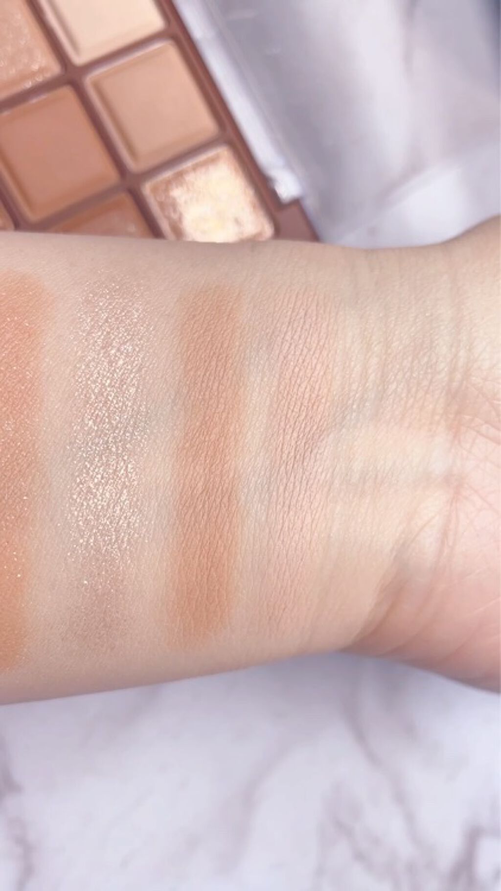 奥ゆかしいチョコレートブラウンムードを詰め込んだアイシャドウパレット🧸 色味はもちろん、アイシャドウが立体的になっていて、本物のチョコレートみたいな、見た目からして可愛い❣️ マットからラメ、グリッターまでバリエーション豊富な9色で、思いのままにアイメイクができる万能パレット🐰
