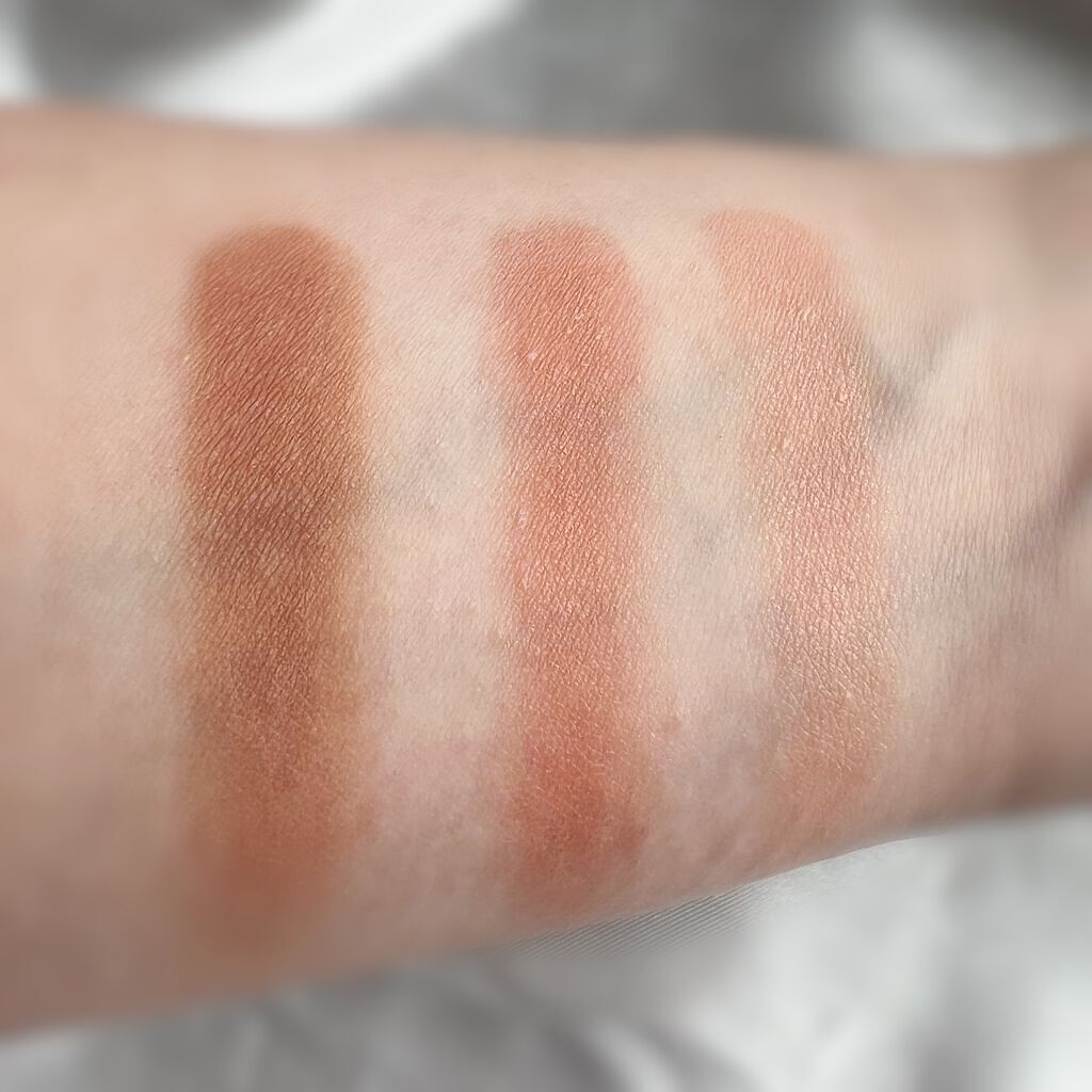 04 ザ・ナラティブ はクールトーンの配色で グレーカラーとかくすんだカラーが多くて 組み合わせは昨日紹介した03より難しいかもしれません。 ヒンスいつも通りの滑らかで発色が良い ただしこのパレットのポイントカラーの ブラックカラーは濃い色なので、キレイに伸ばせないです😢 一番左上はクリームタイプのアイシャドウです 恐らくアイシャドウベースだと思います。 今回の新色03と04 個人的には03の方が気に入りです🌷❤️