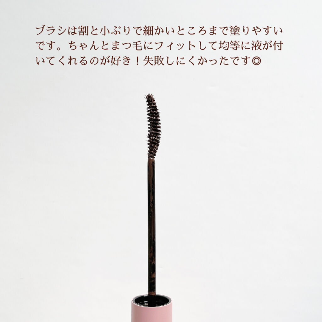 根元から上がった「カール」、圧倒的な「ロング」、ツンと「先細りのシルエット」を追い求めたマスカラ! なめらかな塗り心地が使いやすいマスカラ!毛先まですーっと軽やかに塗ることができます。 このブラウンブラックはしっかり盛れながら、いつものブラックより優しげな印象に仕上げることができました!