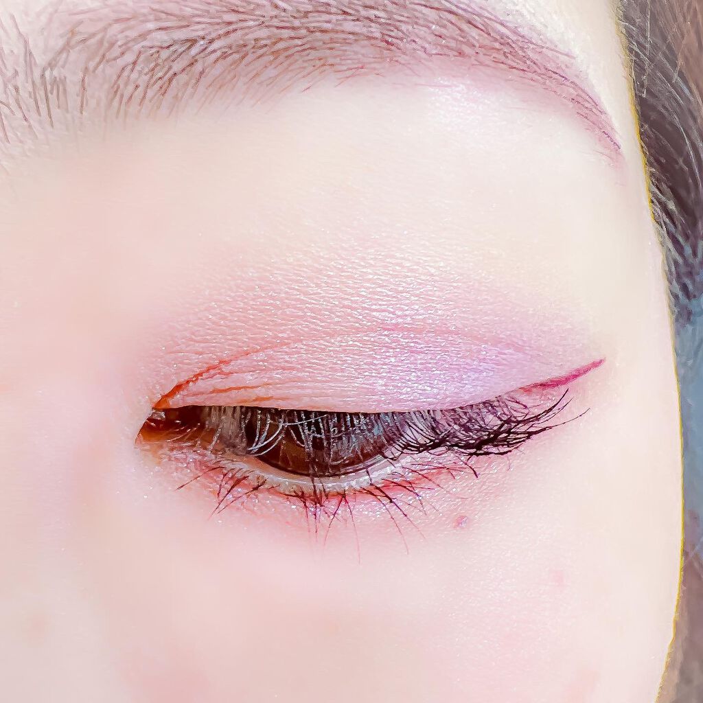ピンクにグレージュも良いですね👌💗 今日は可愛らしい感じにしてみました💕 上下瞼黒目〜目頭側にラメを塗ってキラキラさせております🤩 目尻はマットのピンクを濃いめに重ねて💗 グレージュのアイライナーと相性◎