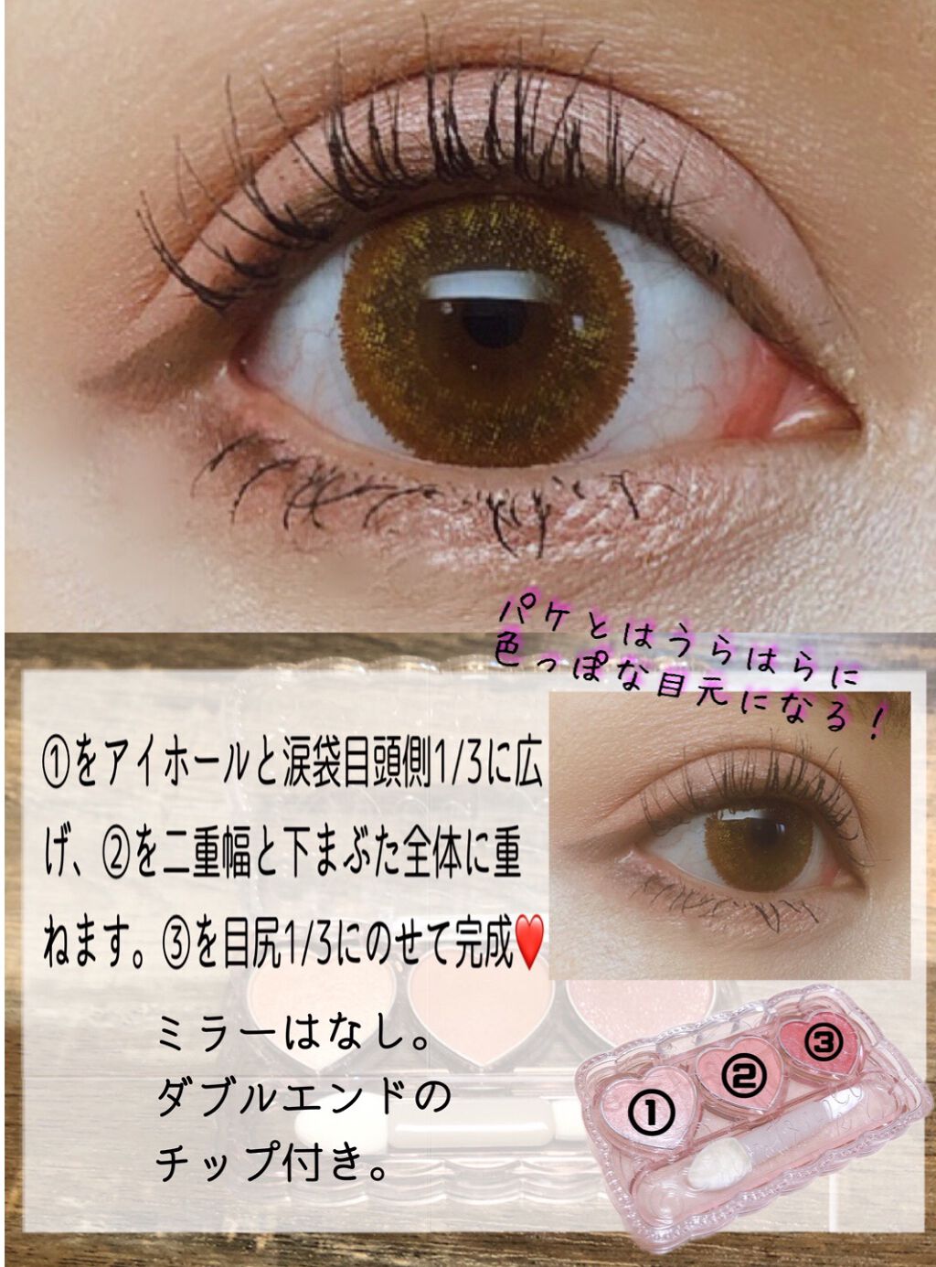粉質がスフレのように柔らかく、しっかり密着してくれる優秀シャドウ✨ ①→②→③と順番に塗るだけで簡単にグラデーションが作れて仕上がる捨て色なしパレット🎨 色もちもよく朝のメイクが夜まで続くところも良いポイント☝️ パケの可愛さも嬉しい♡