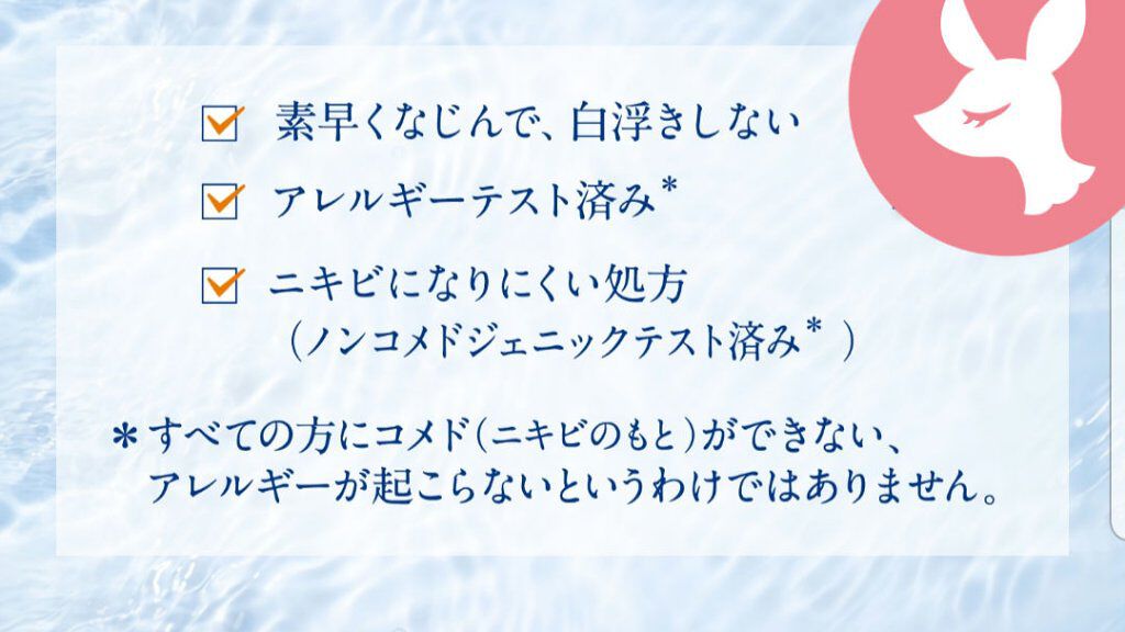 | ウォーターベースなのでさらっとスルスルお肌に塗れる。保湿成分で肌の乾燥を防ぐ! | 詳細を見る | ||