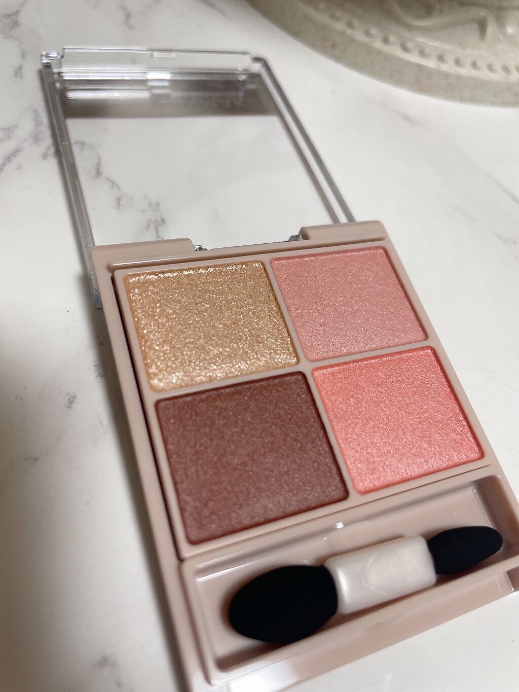 淡いピンクアイシャドウ🐰 柔らかいピンクとベージュが良く馴染みます♪ 甘さ控えめだからシチュエーション・年齢問わず使えそうです。 期待以上のナチュラルなかわいさ✨ リピ確定です!