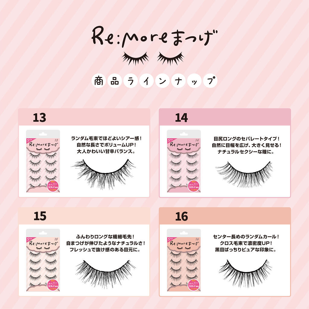 - 💕毎日使うからコスパ抜群5ペア入り💕 ご好評頂いているつけまつげシリーズ Re:Moreまつげ(リモアまつげ) 種類豊富な全18種類✨✨ 種類も豊富&繰り返し使える! いつでも映えるナチュ盛り✨ 365日きゅん💕Happyな気分に🌼 ナチュラルなのに盛れるデザインなので、 ”くっきりデカ目なのに自然なつけ心地” 理想のまつげになっています♪ 気分にぴったりのまつげを見つけて、 毎日楽しんでください☺