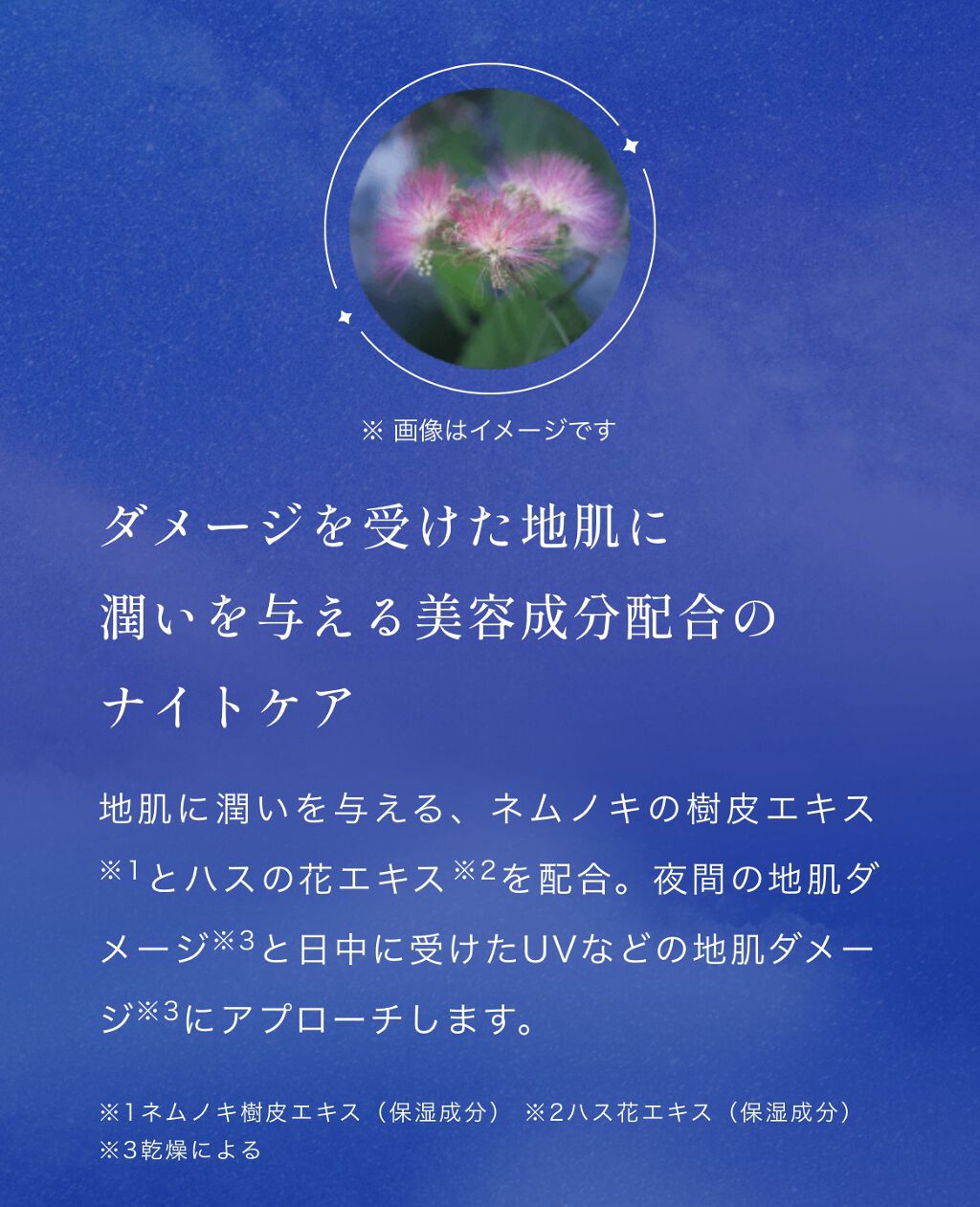 - ダメージリスクは日中だけでなく、夜にも。髪と地肌の濃密ナイトケアで、しっとりうるツヤ髪へ。 ナイトキャップ処方で睡眠中の摩擦・乾燥ダメージから髪を守り、地肌に潤いを与える美容液成分配合。 シャンプー:シリコン、パラベン、鉱物油、合成着色料フリー トリートメント:パラベン、鉱物油、合成着色料フリー ◎ネロリ&ピオニーの香り