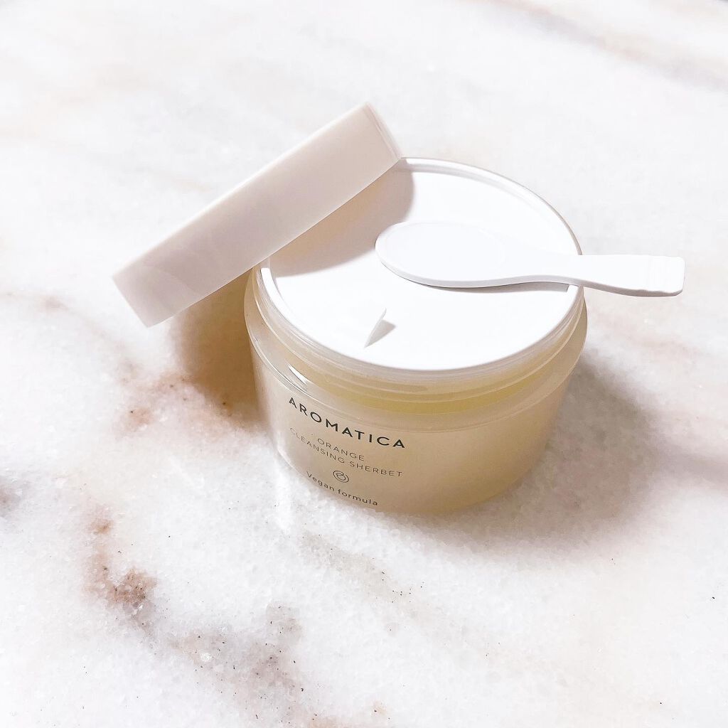 アロマティカAROMATICA🍊オレンジクレンジングシャーベット🍊過剰油分や皮脂、濃いメイクまでしっかりと落とすワンステップマルチシャーベットクレンザービタミンC、Aなどの有効成分をだっぷりと込んだオレンジオイルバームのような質感で、とろっと...
